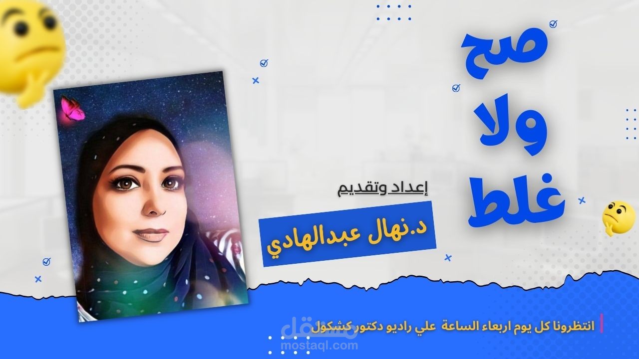 اقوم باعداد وتقديم برنامج اذاعي على راديو د.كشكول أول راديو طبي اون لاين برنامج صح ولا غلط بيناقش اهم المفاهيم الخاطئة وتصحيها