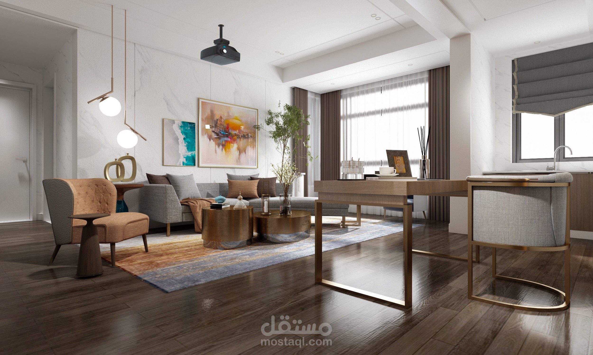 تصميم عبارة عن مكتب طراز حديث ذو فخامة وألوان راقية وحديثة وأثاث مناسب
