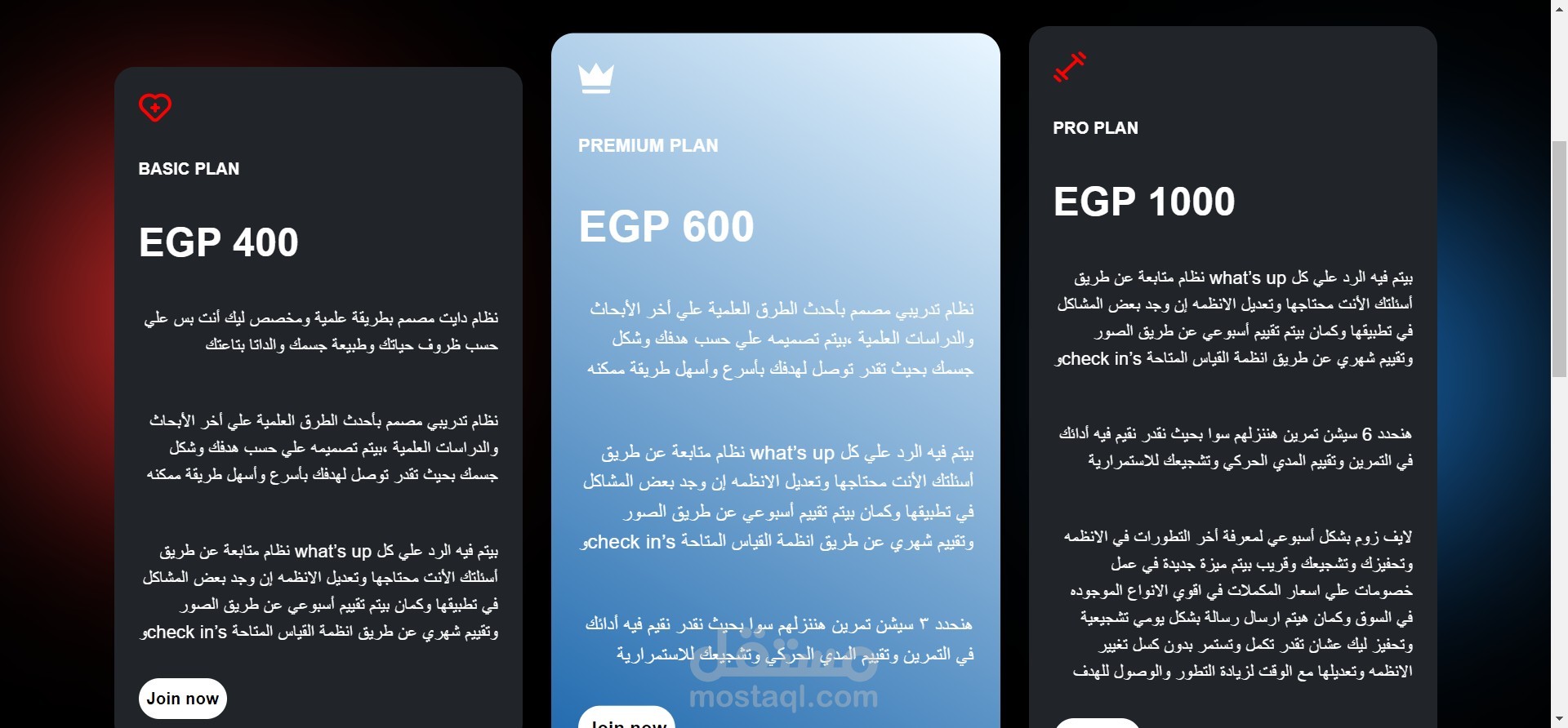 قمت بانشاءه لشخص يملك صاله رياضيه ويعمل مدرب اونلاين