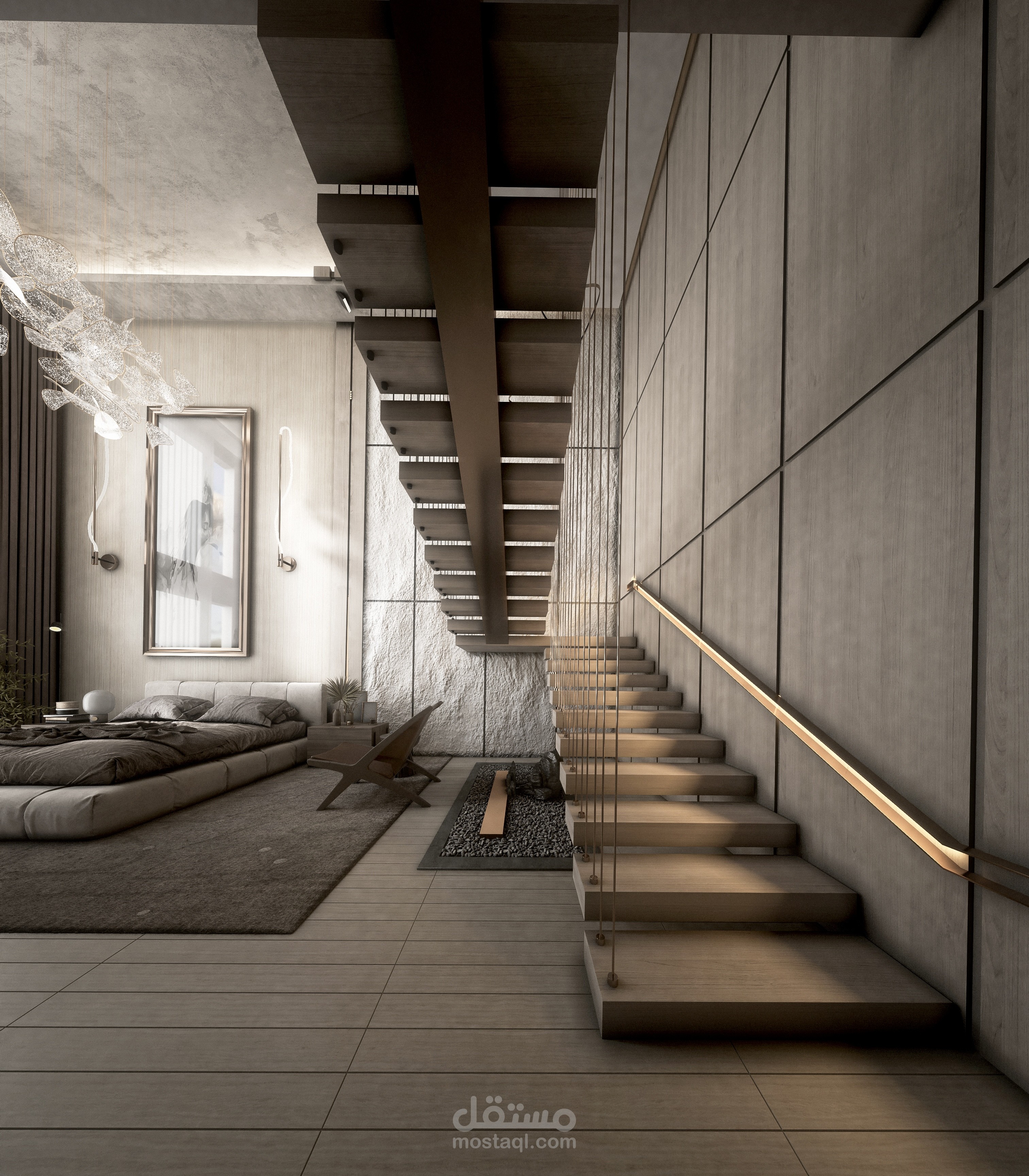 تصميم غرفة نوم ذات ارتفاع ٦ متر