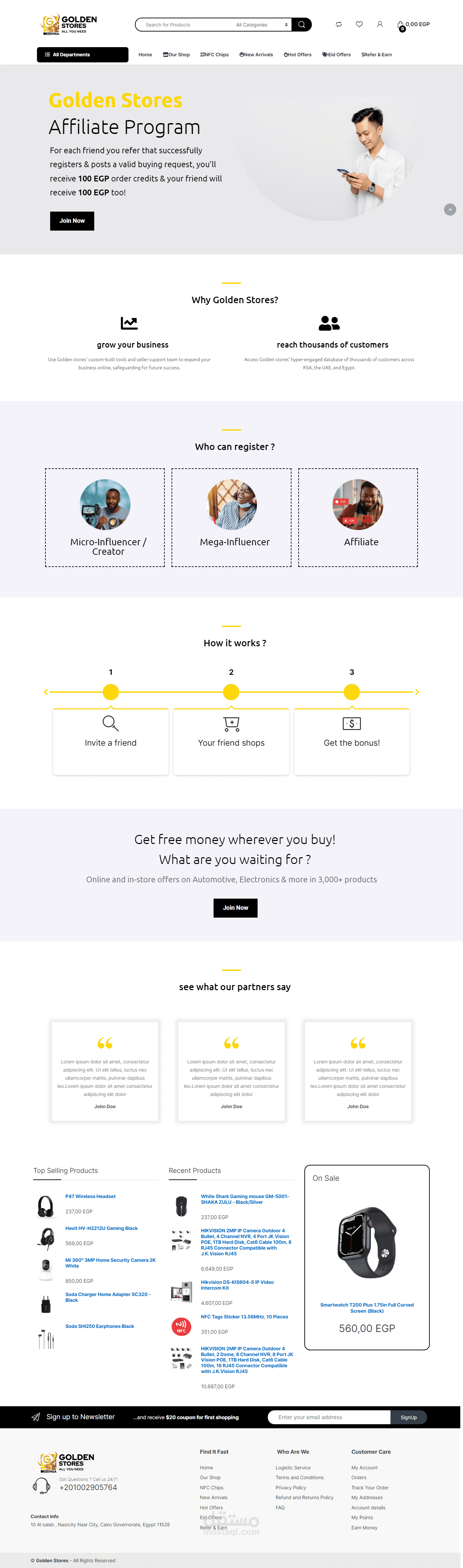 موقع لللتجاره الالكترونيه لبيع وشراء الالكترونيات والأجهزه المنزليه شبيه بجوميا ونون وأمازون مدمج به نظام الافلييت و multi vendor