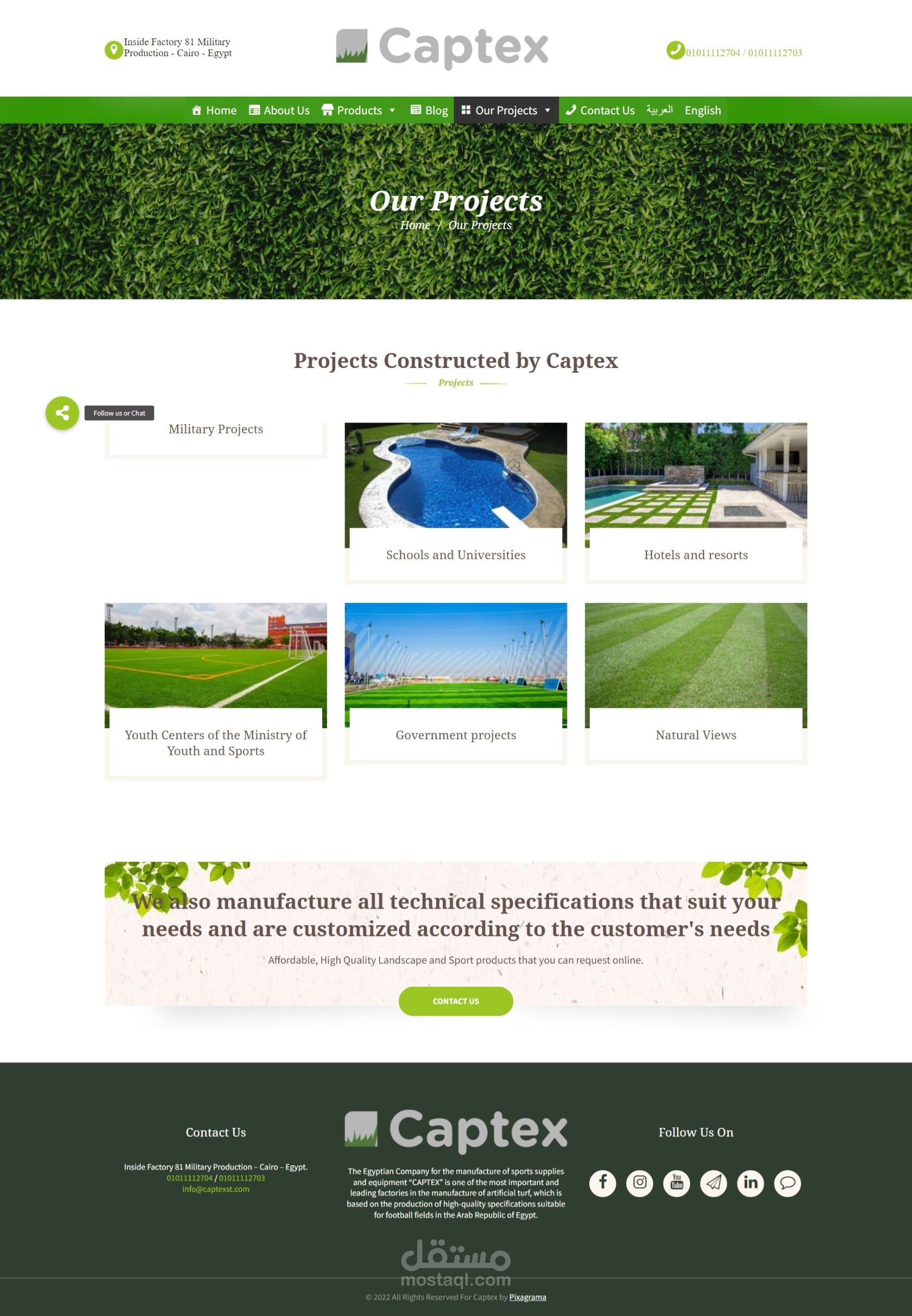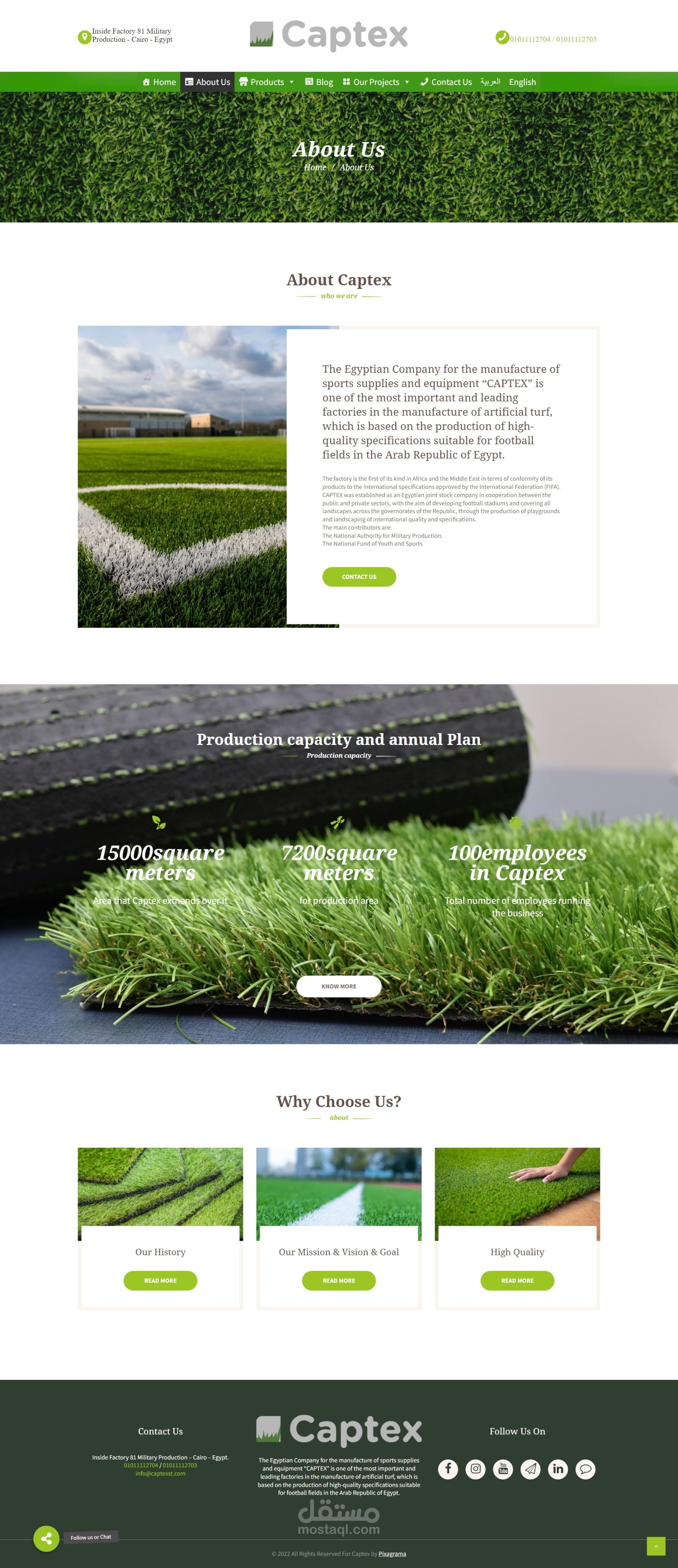 تعد الشركة المصرية لصناعة المستلزمات والأدوات الرياضية “CAPTEX” من أهم المصانع الرائدة في تصنيع العشب الصناعي والتي تقوم على إنتاج مواصفات بجودة عالية تتناسب مع ملاعب كرة القدم على مستوى جمهورية مصر العربية.
