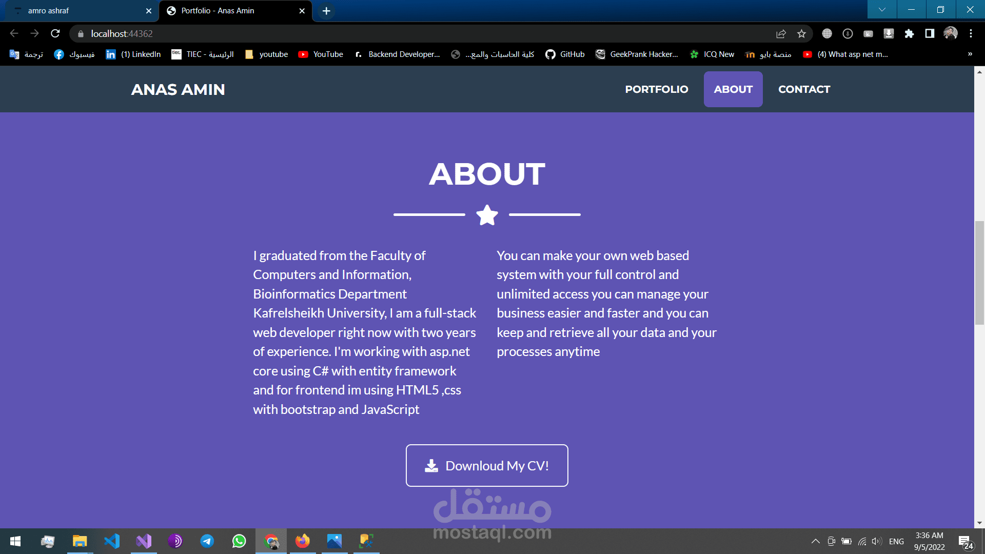 just a prototype for my portfolio which has my projects ,details contact field and contact info . Tech: C Sharp,