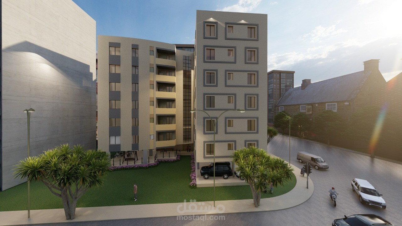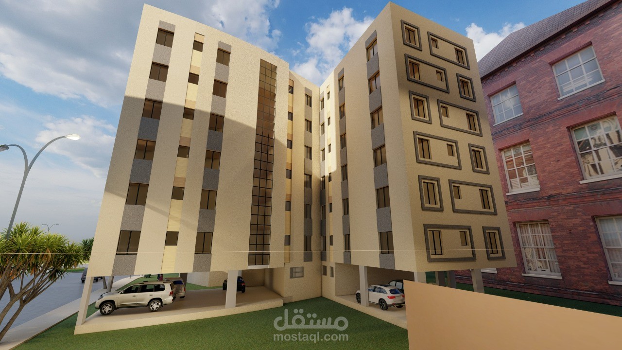 تصميم عمارة سكنية مكونة من 7 طوابق كل طابق 4 شقق ذات مساحات مختلفة