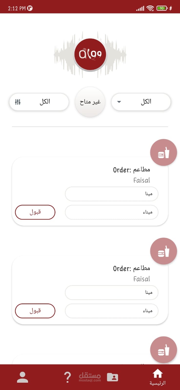 - تعرض طلبات التوصيل في التطبيق ليقوم الديلفري بقبول الطلب وتوصيله.