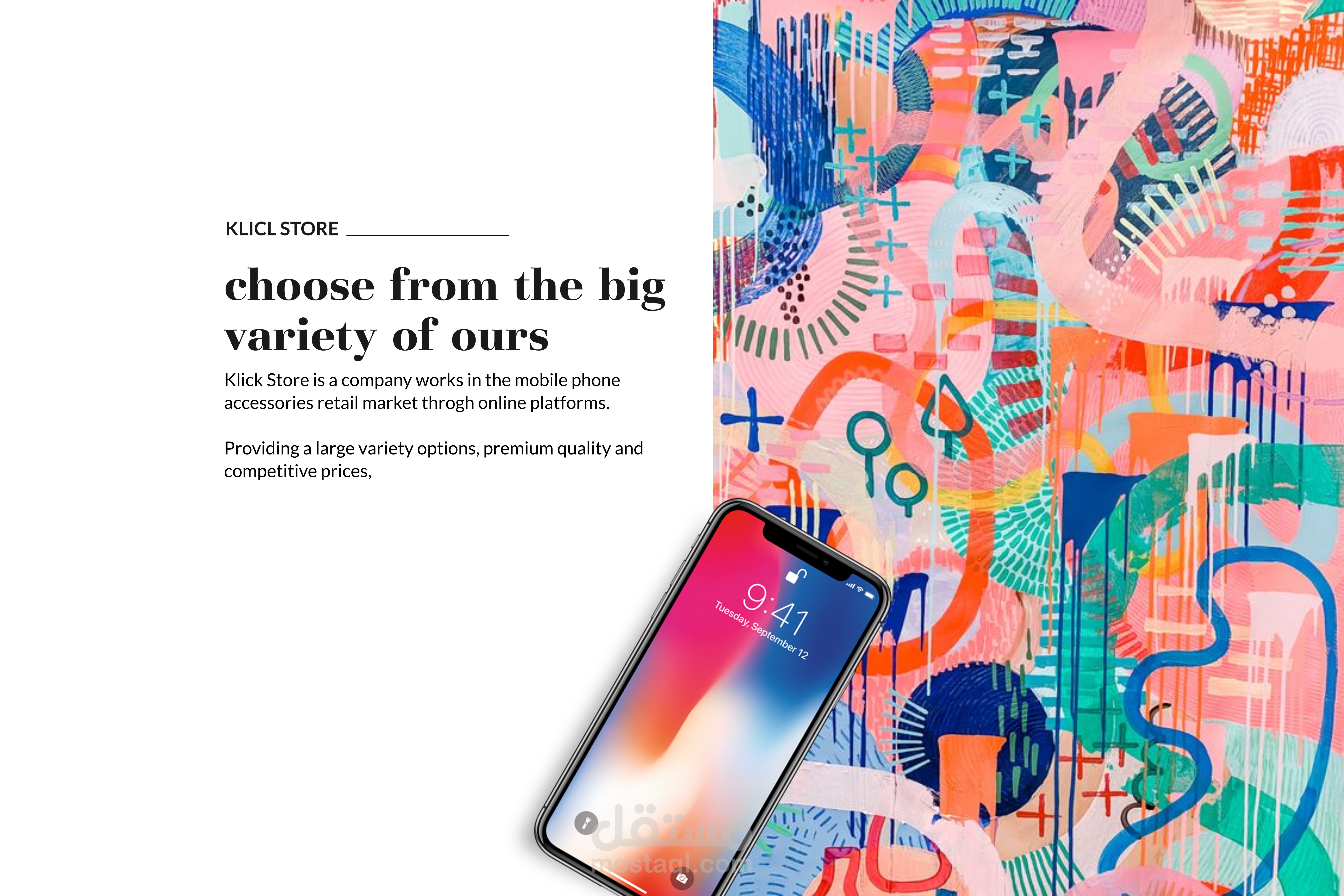 تصميم هوية بصرية كاملة لمتجر إلكتروني في العراق يبيع الجوالات ومستلزماتها.