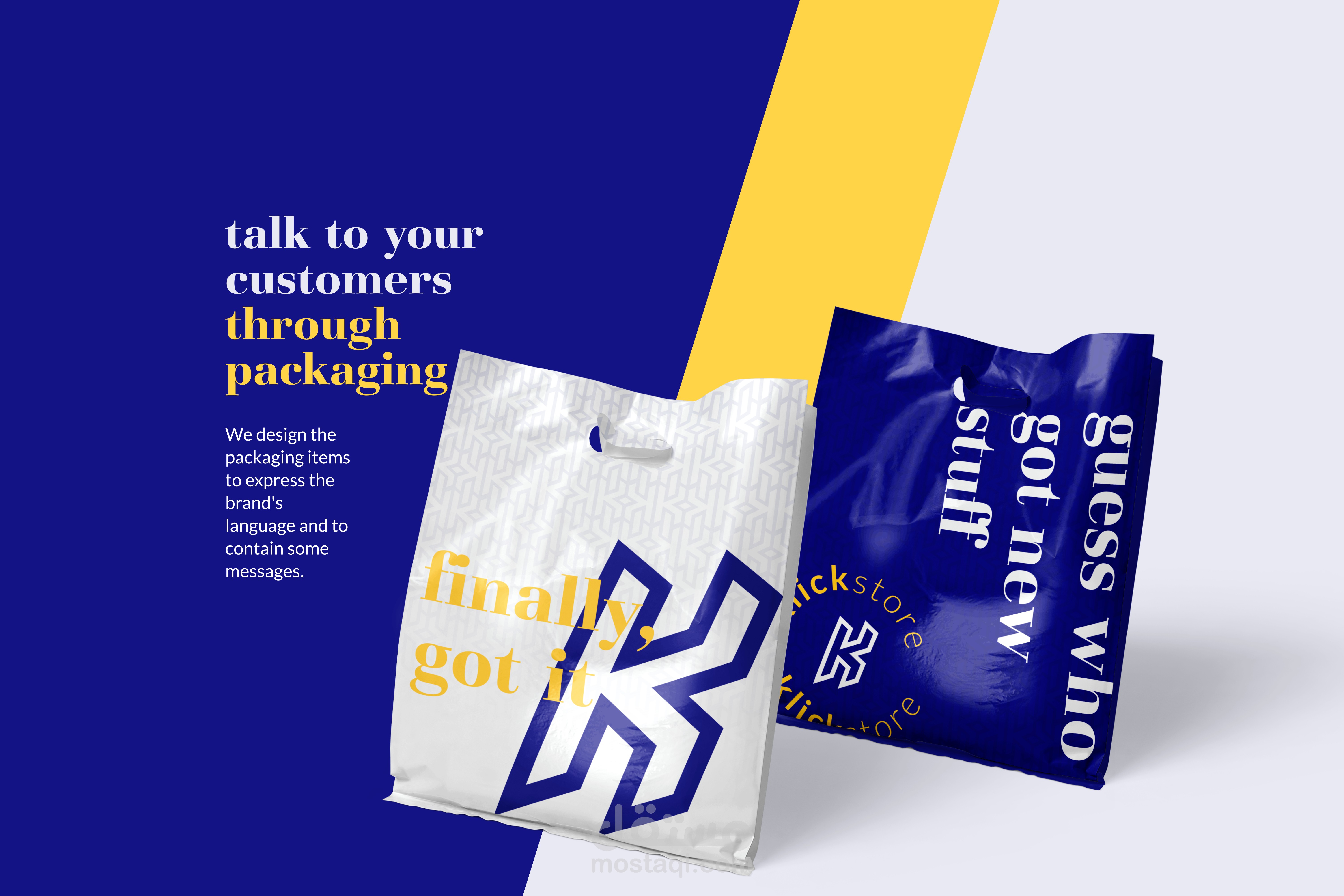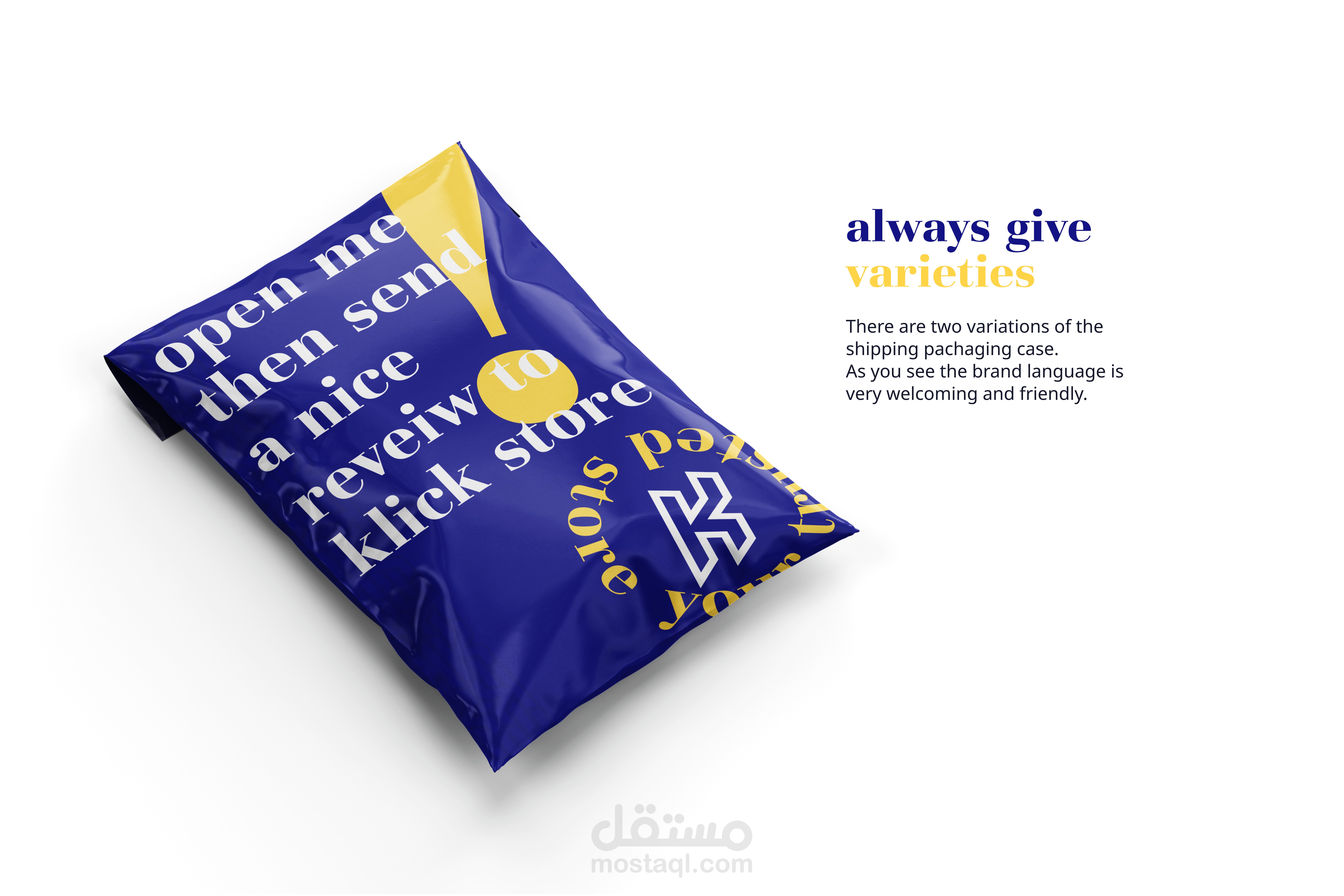 تم تصميم الشعار واختيار الألوان وتصميم التغليف والتعبئة بالوضع في الاعتبار أن هناك تغليف خاص للشحن.