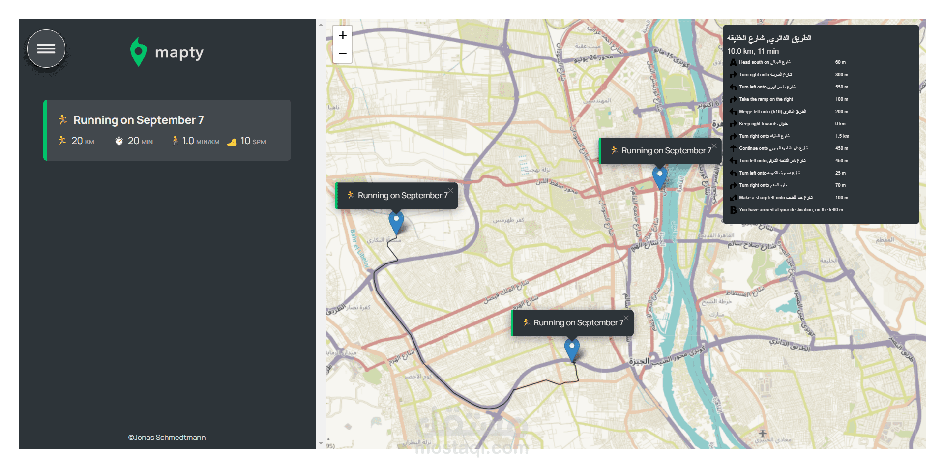 تم استخدام Vanilla JavaScript OOP لتطوير جميع وظائف هذا الموقع، يمكنك تسجيل جميع تدريبات الجري أو ركوب الدراجات باستخدام هذا التطبيق، ويمكنك أيضًا إنشاء مسار بين نقطتين على الخريطة، تم استخدام مكتبة المنشورات ومكتبة توجيه المنشورات لتحميل الخريطة وبناء وظيفة المسار، كما تم استخدام التخزين المحلي للحفاظ على جميع التدريبات الخاصة بك حتى بعد إغلاق الصفحة، كما يتم توفير جميع وظائف التدريبات.