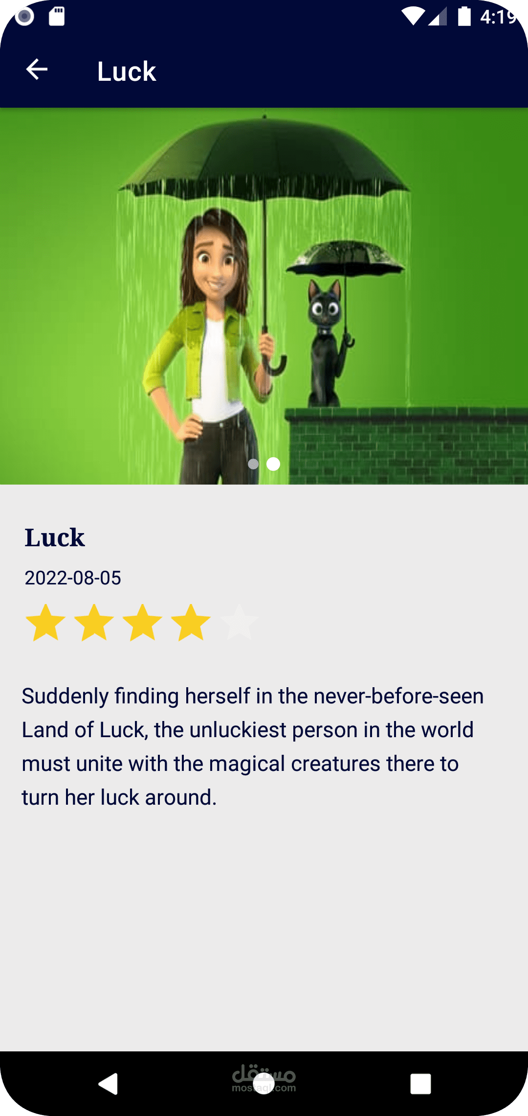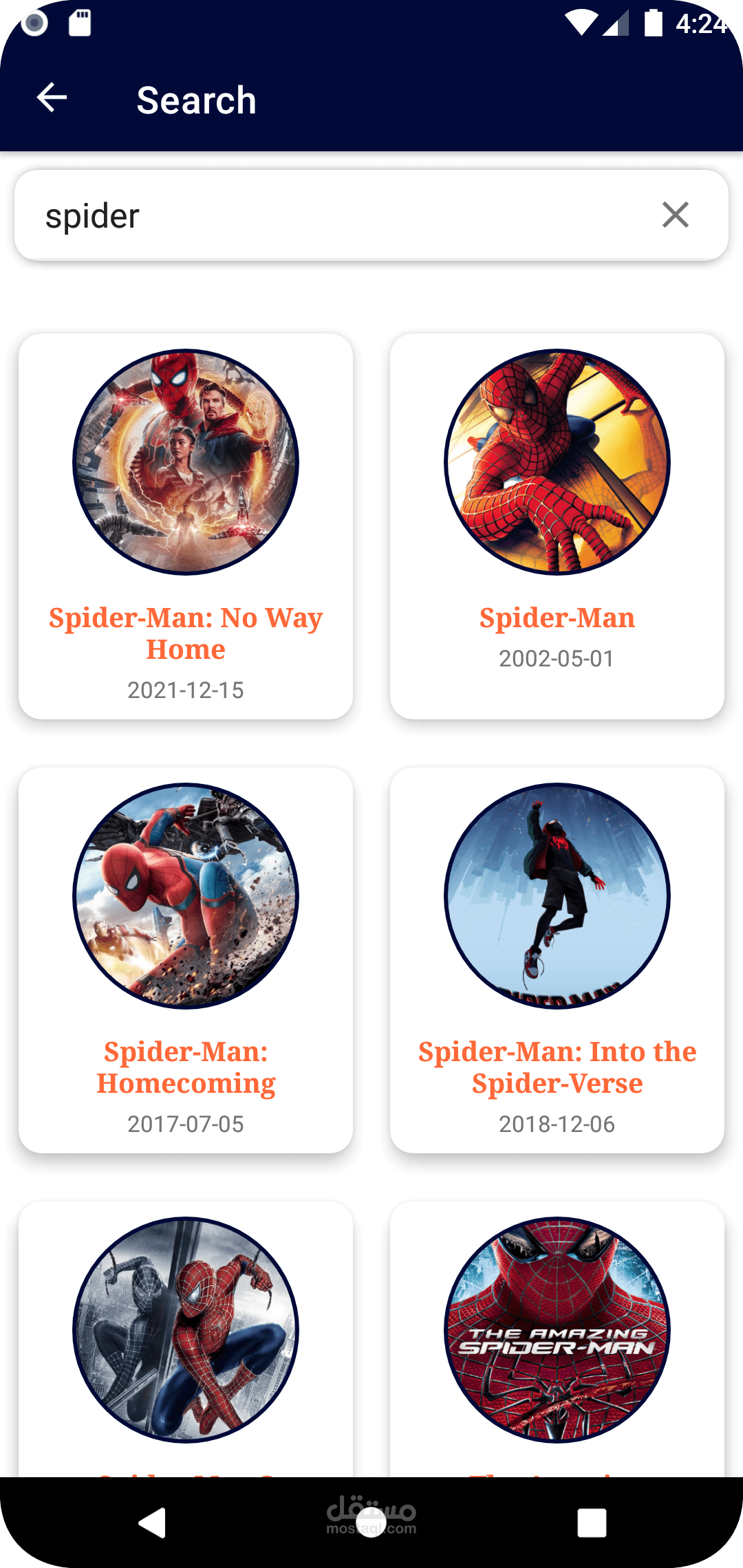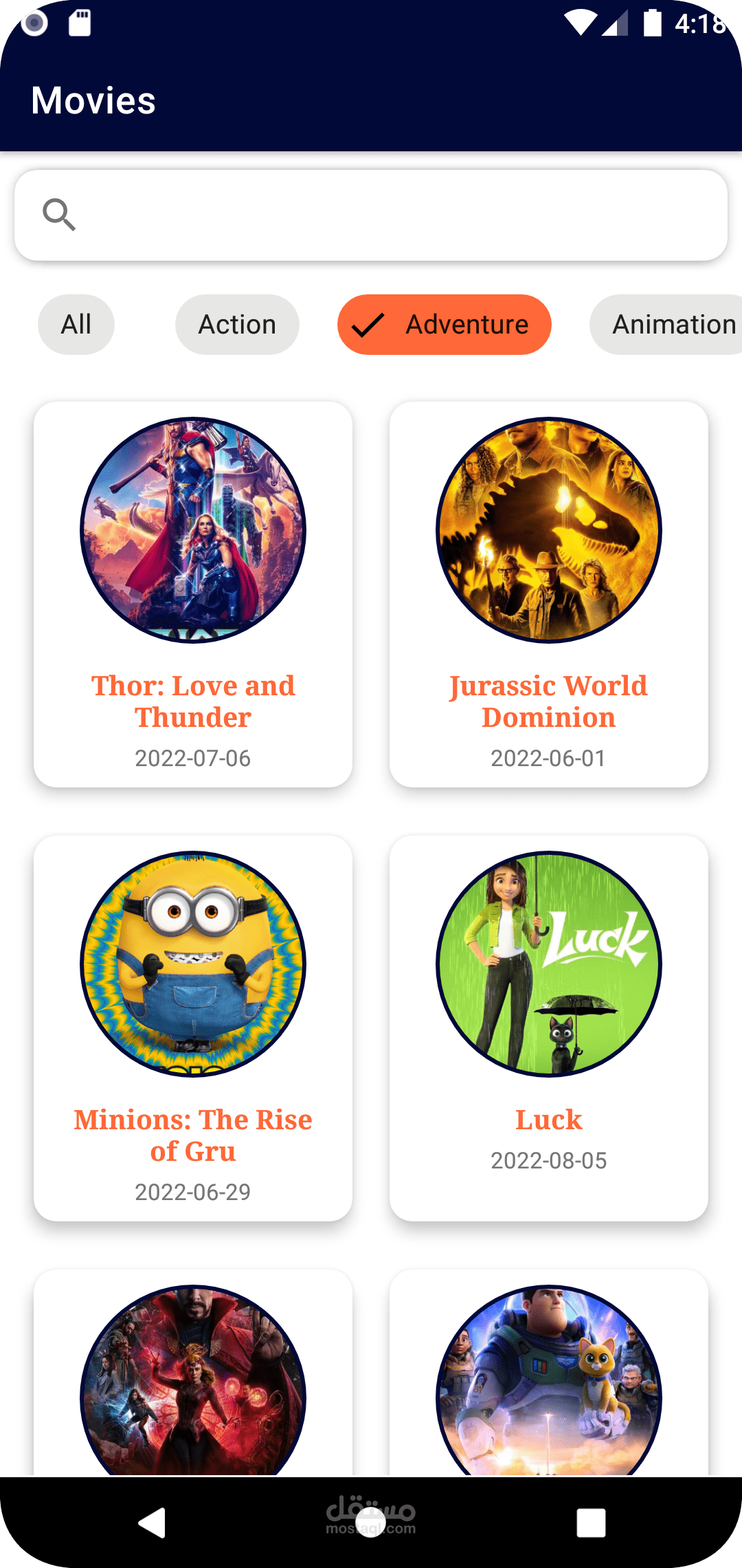 تطبيق لعرض الافلام والتفاصيل الخاصة بها مع امكانية البحث عن فيلم ما داخل الابليكيشن