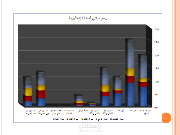 رسم بياني يوضح أعلى وأقل الدرجات ومتوسط العلامة لكل سؤال.