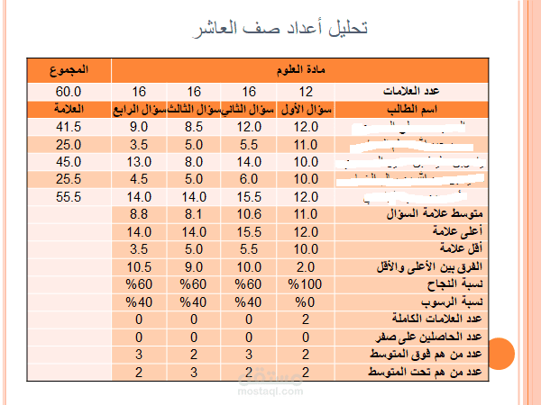 قمت بتصميم جدول متكامل لعرض نتائج الطلاب، يتضمن: