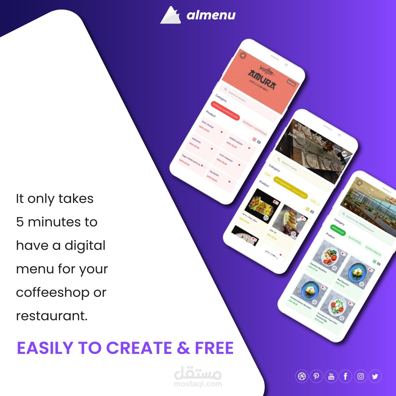 منشور لموقع خاص لعمل الديجيتال منيو للمطاعم والمقاهي.