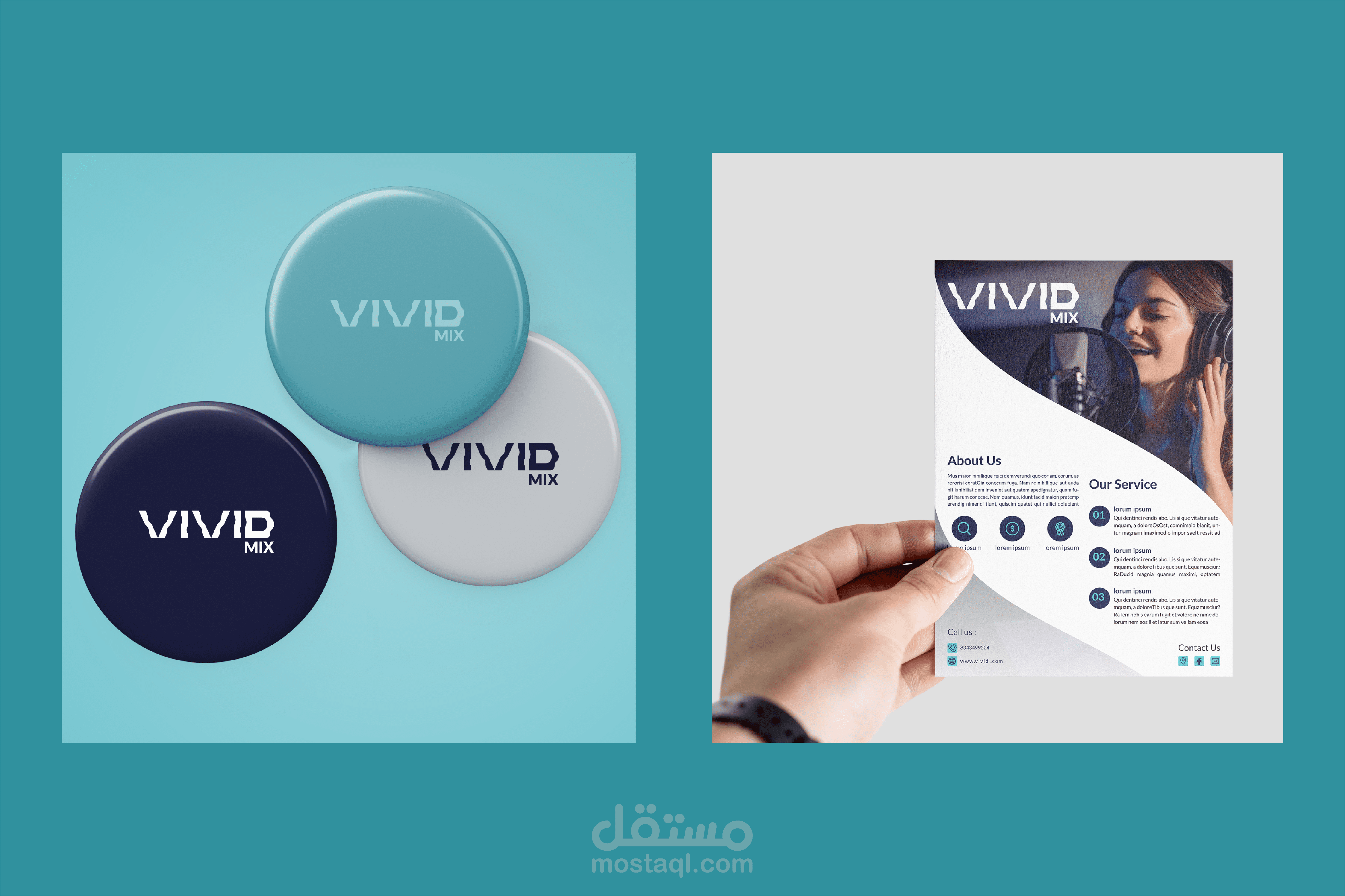 Viivid MIx هوا استديو تسجيل صوتي ، تم تصميم شعار يعبر عن الهوية البصرية الخاصة بالاستديو والي يعبر عنها بالكلمة vivid التي تعني الوضوح . الموسيقى المنتجة بواسطة الاستديو تمتاز بالوضوح العالي
