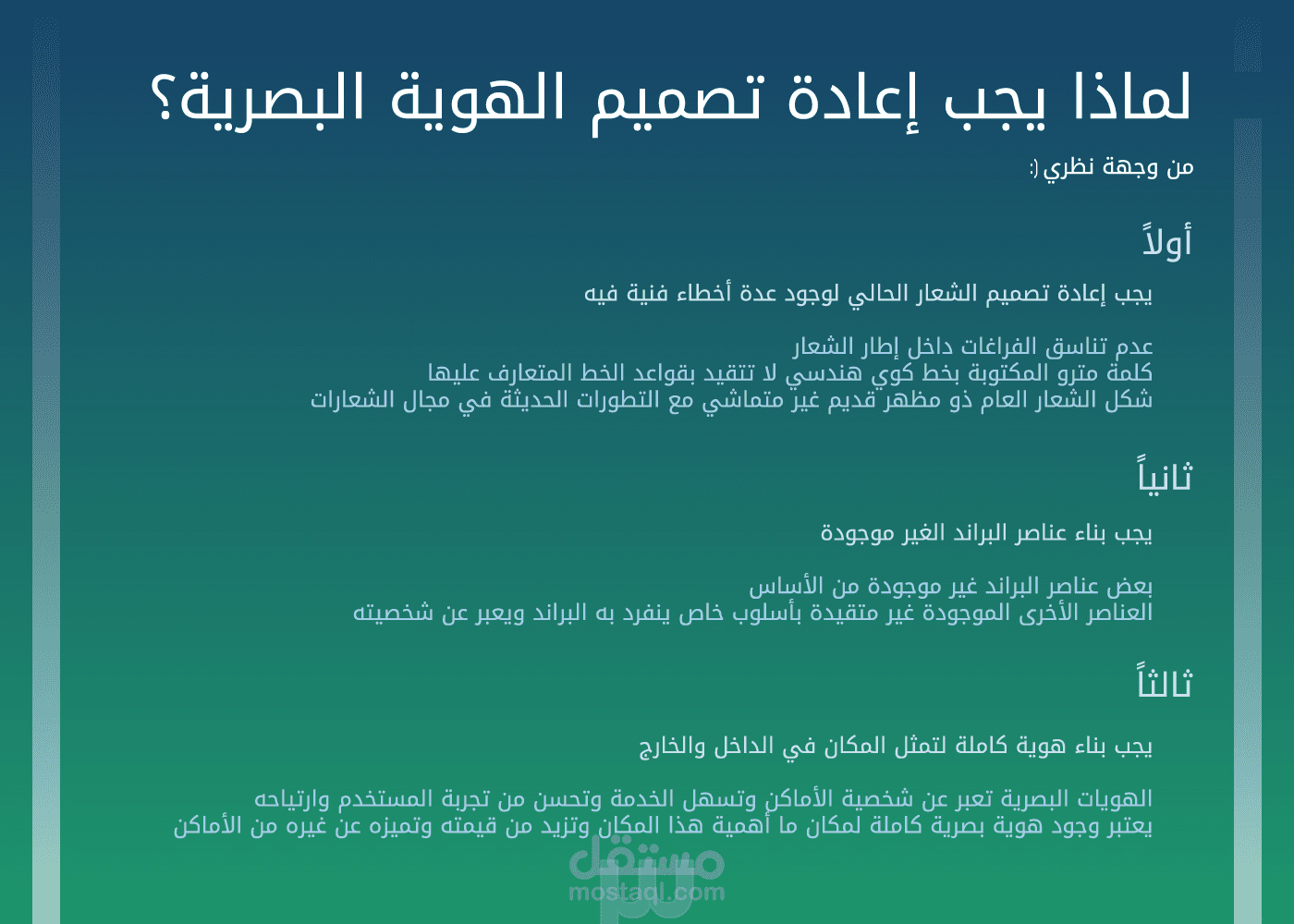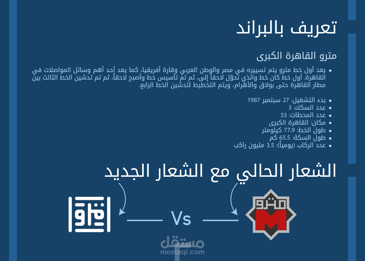 إعادة لتصميم الهوية البصرية لمترو القاهرة الكبرى، وتعديل بعض الأخطاء وإضفاء طابع عربي خاص للهوية.