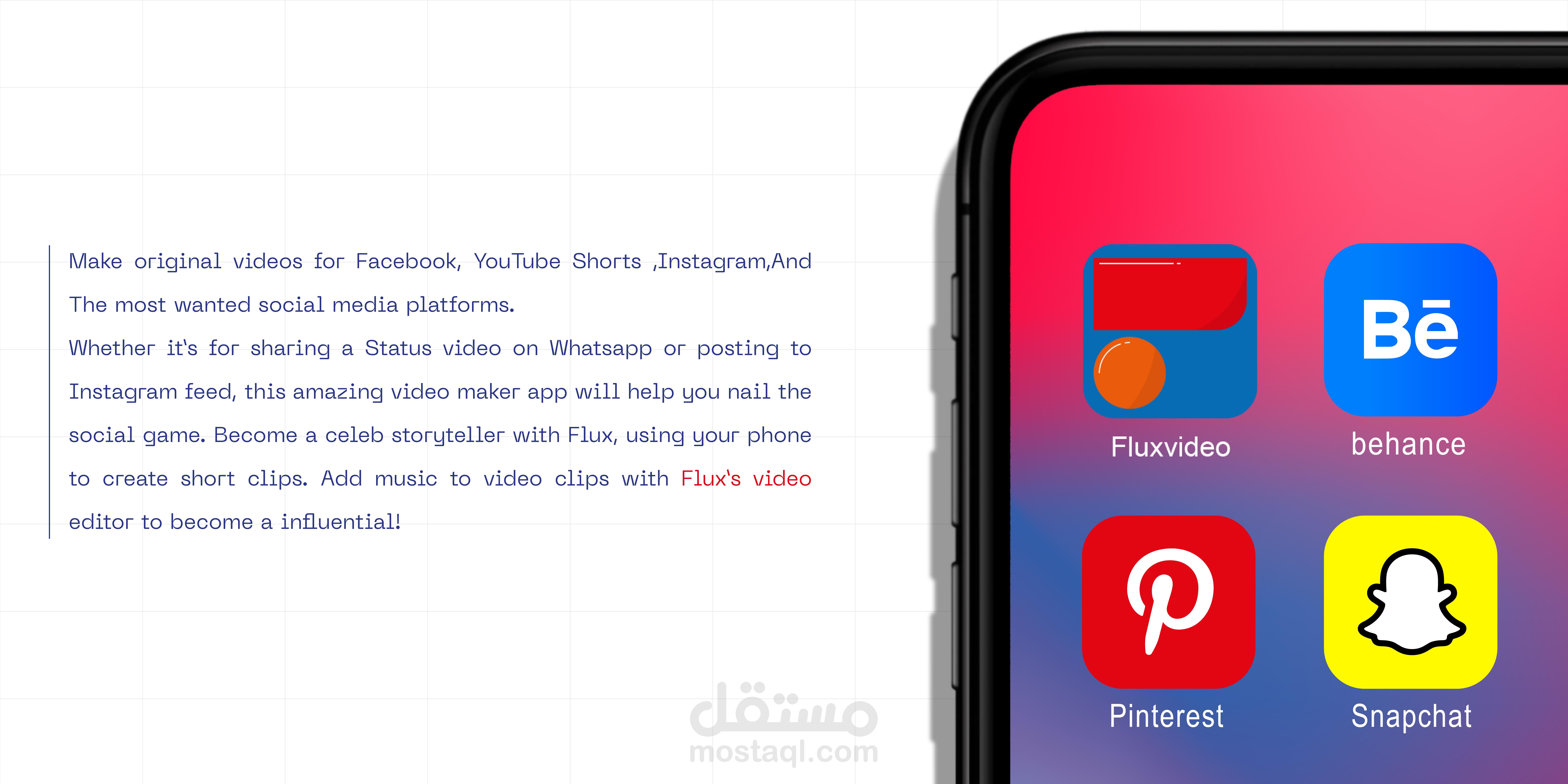 عملت شعار flux لتطبيق على الهاتف مختص للفيديوهات و مشاركتها على مواقع التواصل الاجتماعي