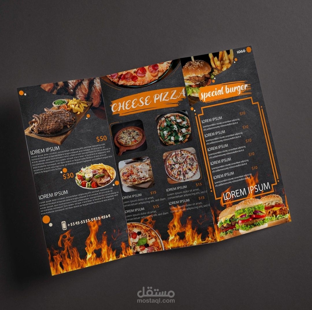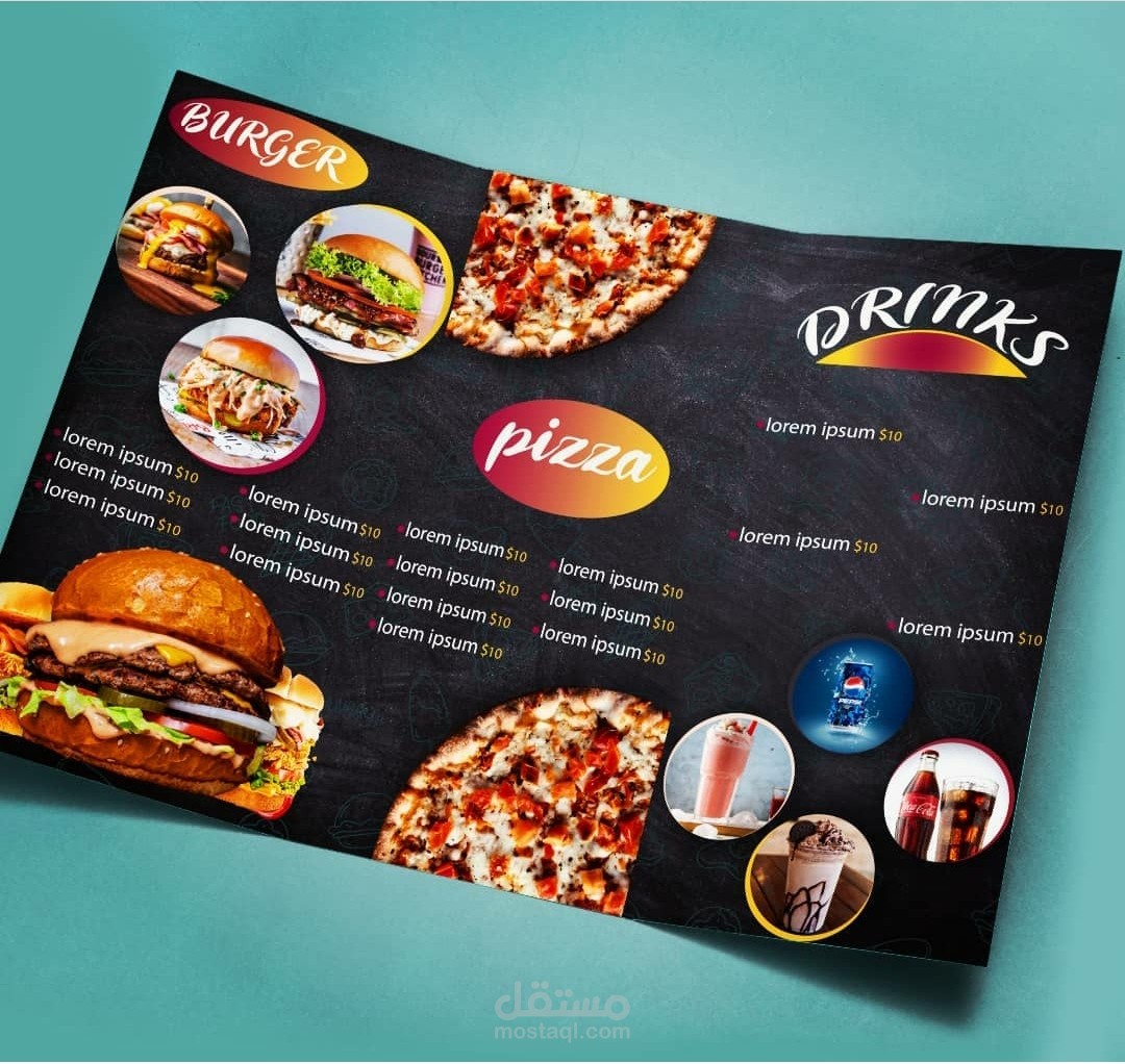 تصاميم منيو للمطاعم و الكفيهات تصاصميم مختصرة عن الطعام و تم استخدام اللوان الطعام