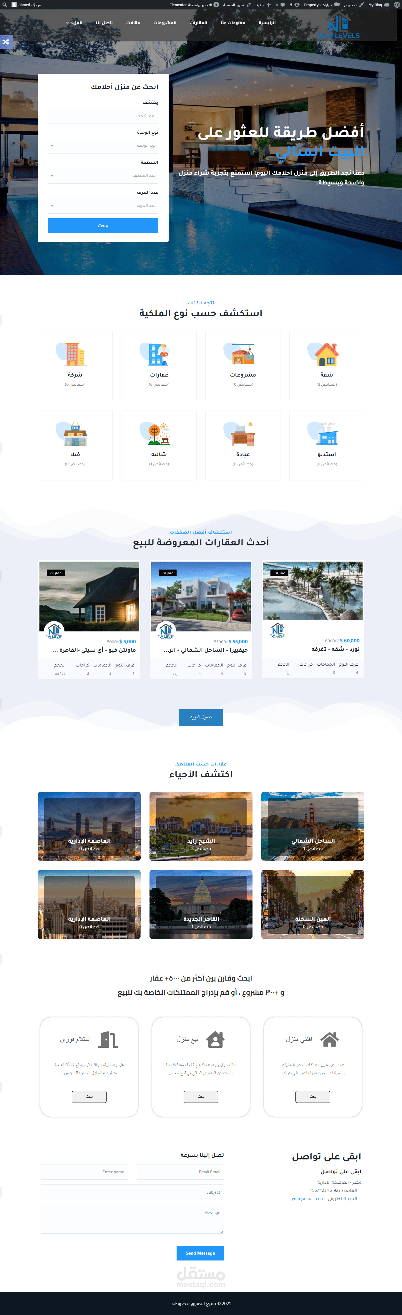 تم انشاء الموقع وهو خاص بالعقارات والمشاريع على وردبرس بإستخدام الأدوات والثيمات المعاصرة