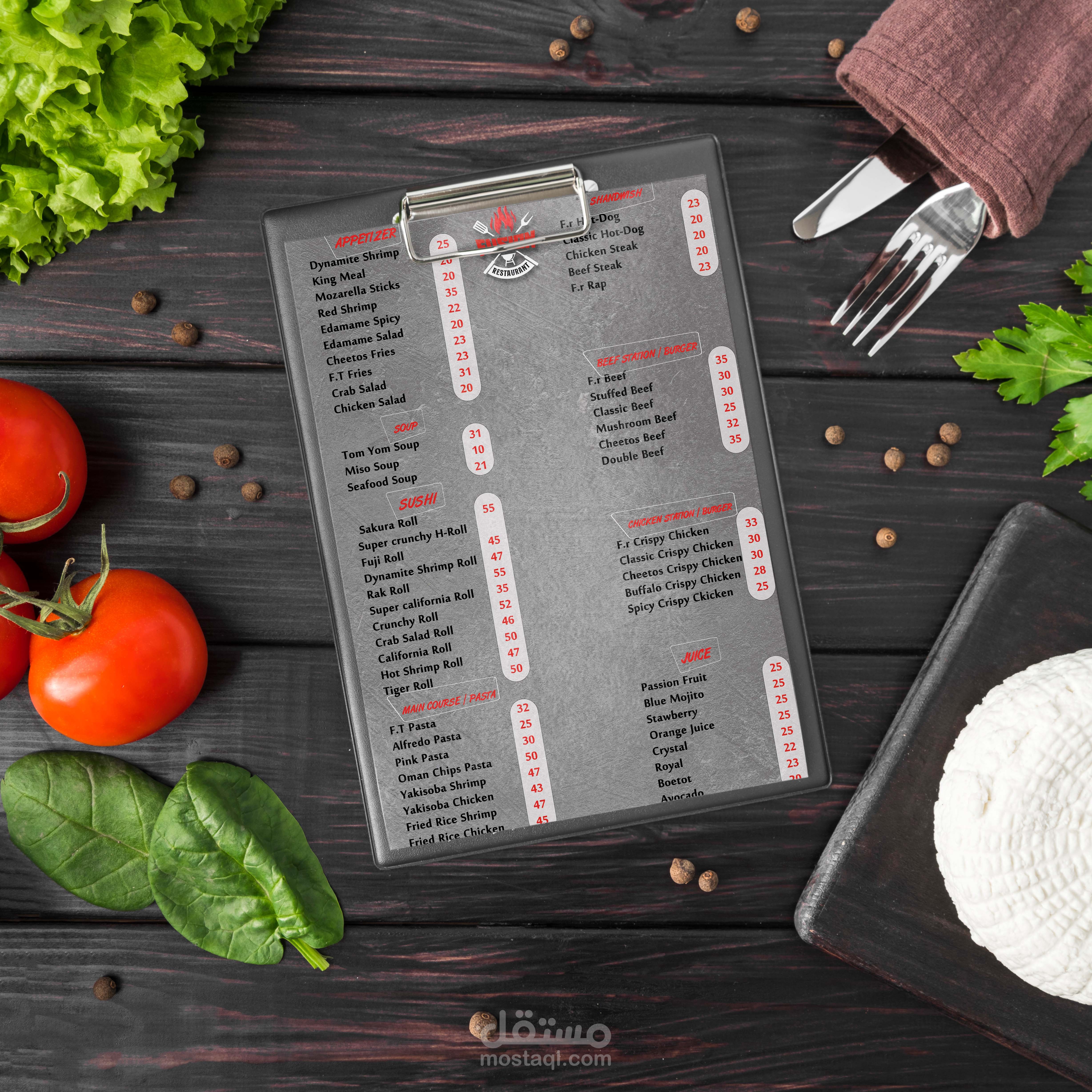 كذلك تصميم المينو الخاص بالعربة