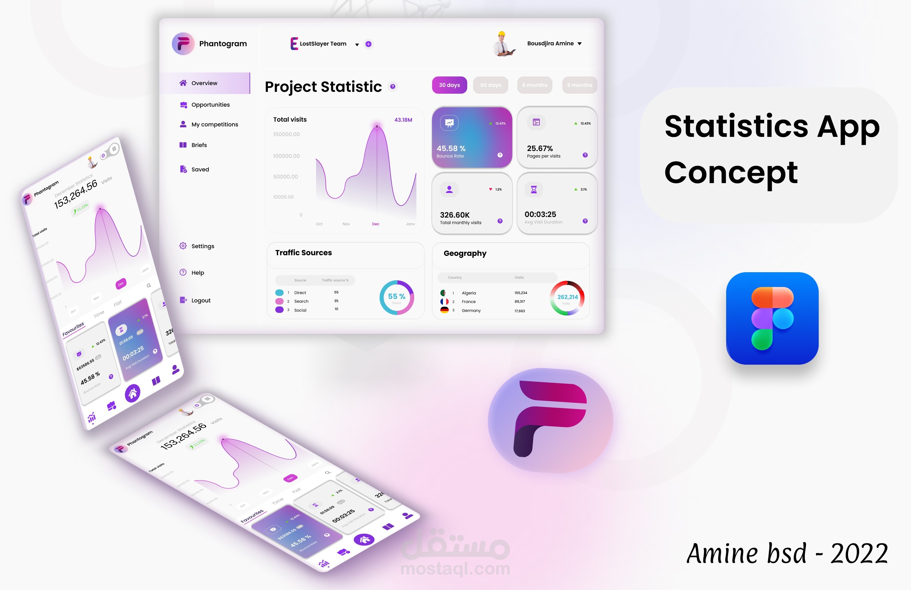 Statistic Application dashboard and mobile version UI Concept