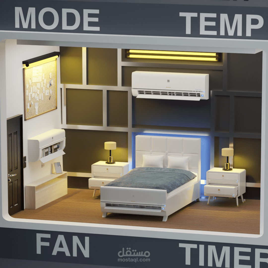 يظهر لك فى شاشة الريموت غرفة وتوضح لك اماكن التكييف وكيف يتم توزيع الهواء فى جميع انواع الغرفة