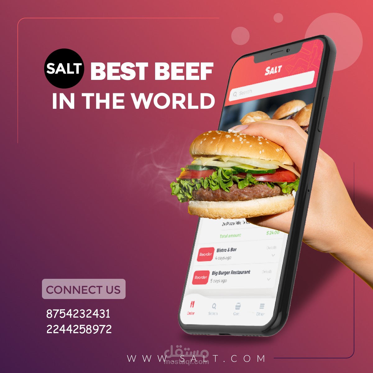 تصميم بوست سوشيال ميديا دعائي لمطعم ملح للبرجر " Post social media design for an advertisement for Salt Burger Restaurant "