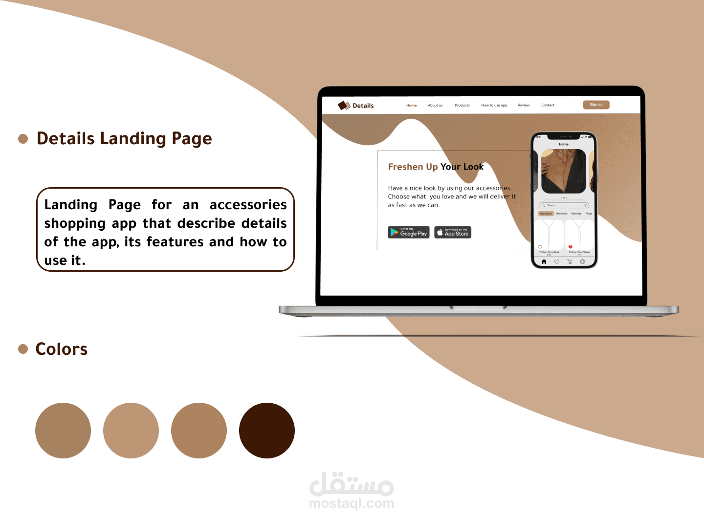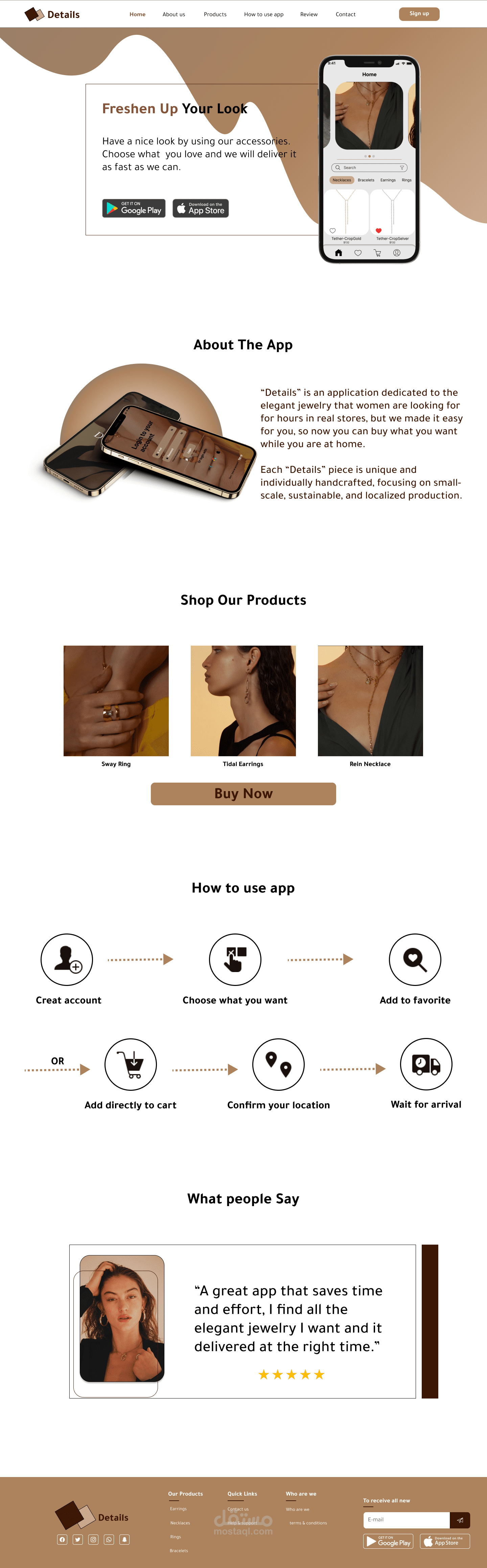 Landing Page for an accessories shopping app that describe details of the app, its features and how to use it.