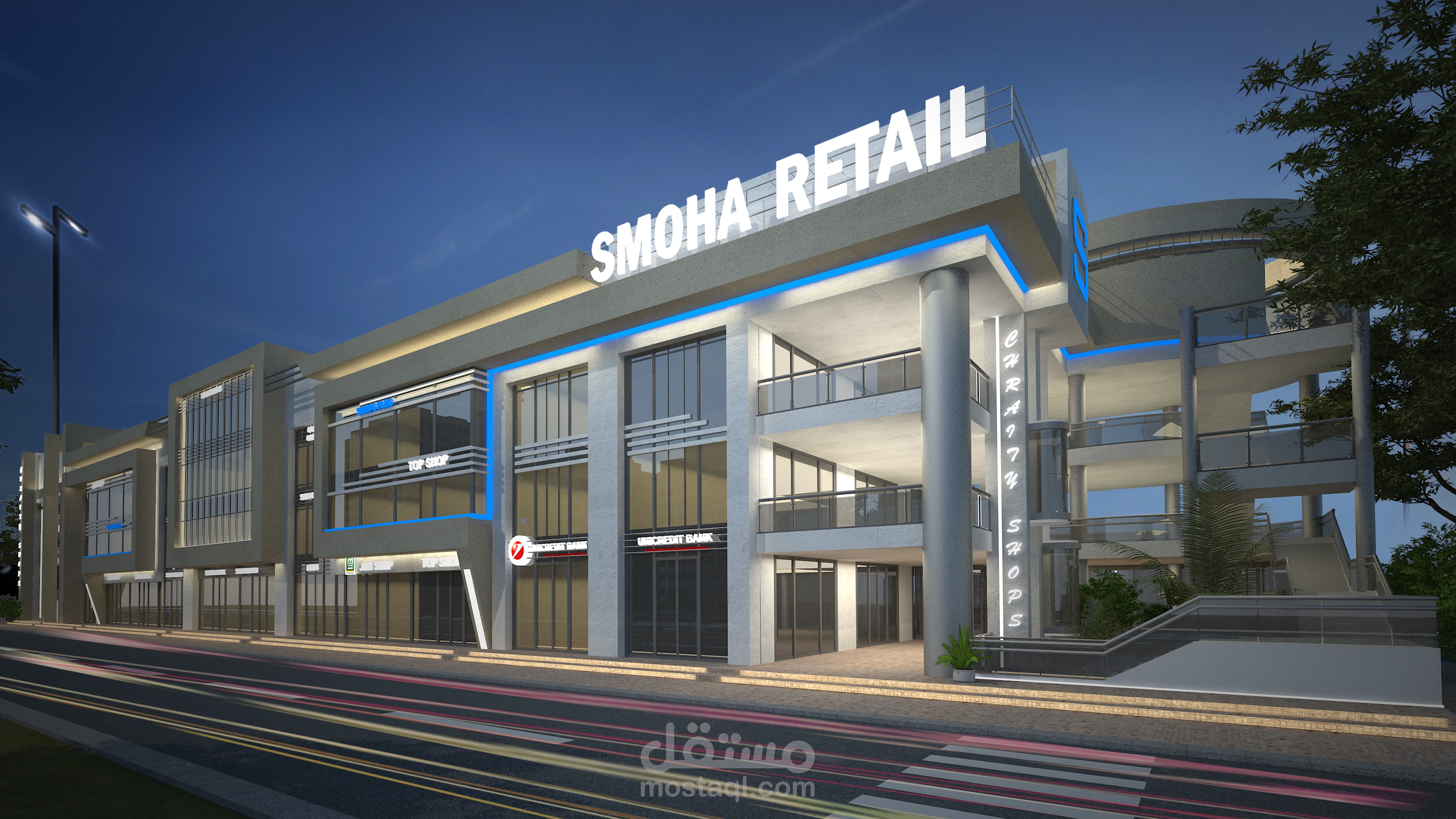 تصميم واجهه محلات تجاريه بارتفاع دورين واخراجها ببرنامج 3dmax and photoshop