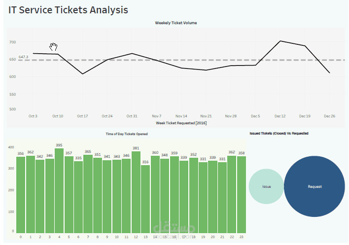 لوحة البيانات تقيس حجم المهام المفتوحة في مقابل المغلقة ومتوسط المهام التي يطلبها الموظفون بالشركة من قسم الـ IT