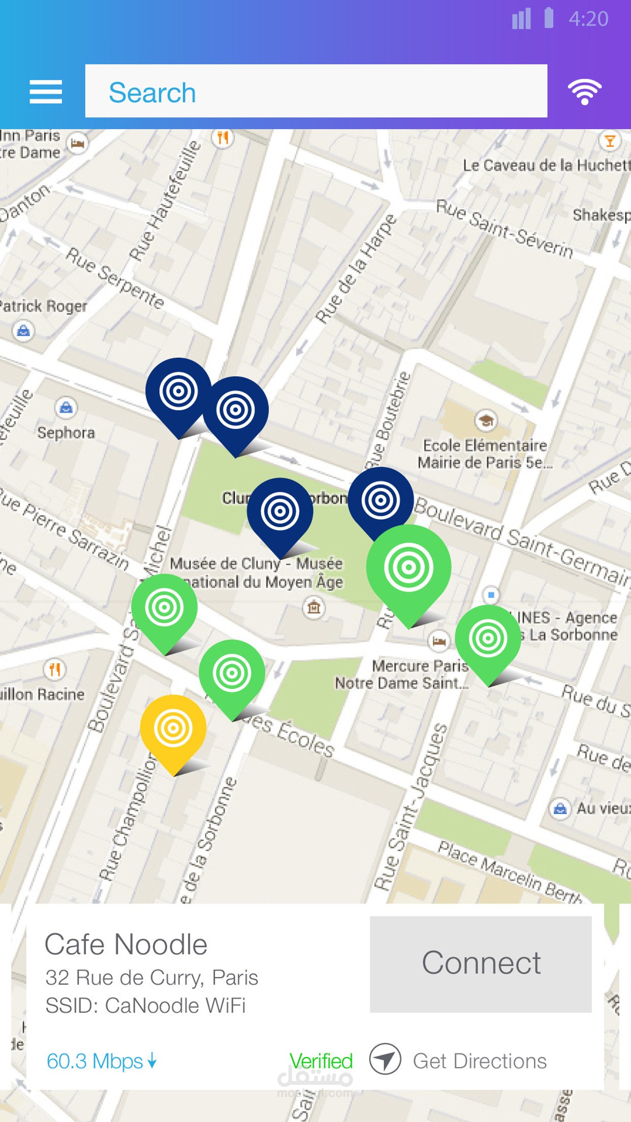 تطبيق iOS يساعد ف معرفه امكان ال wifi hotspots والدخول عليها مجانا من خلال شركه WIFI METTROPOLIS