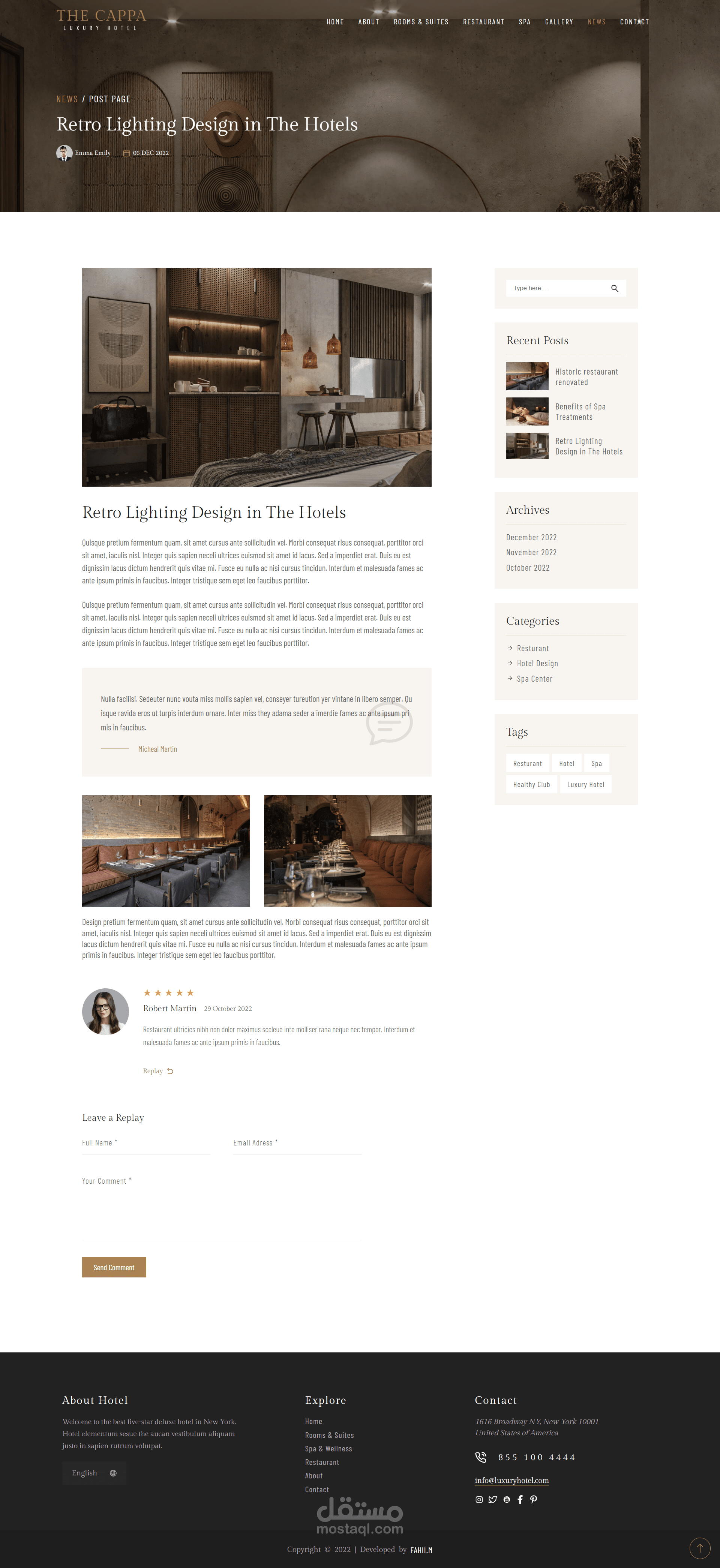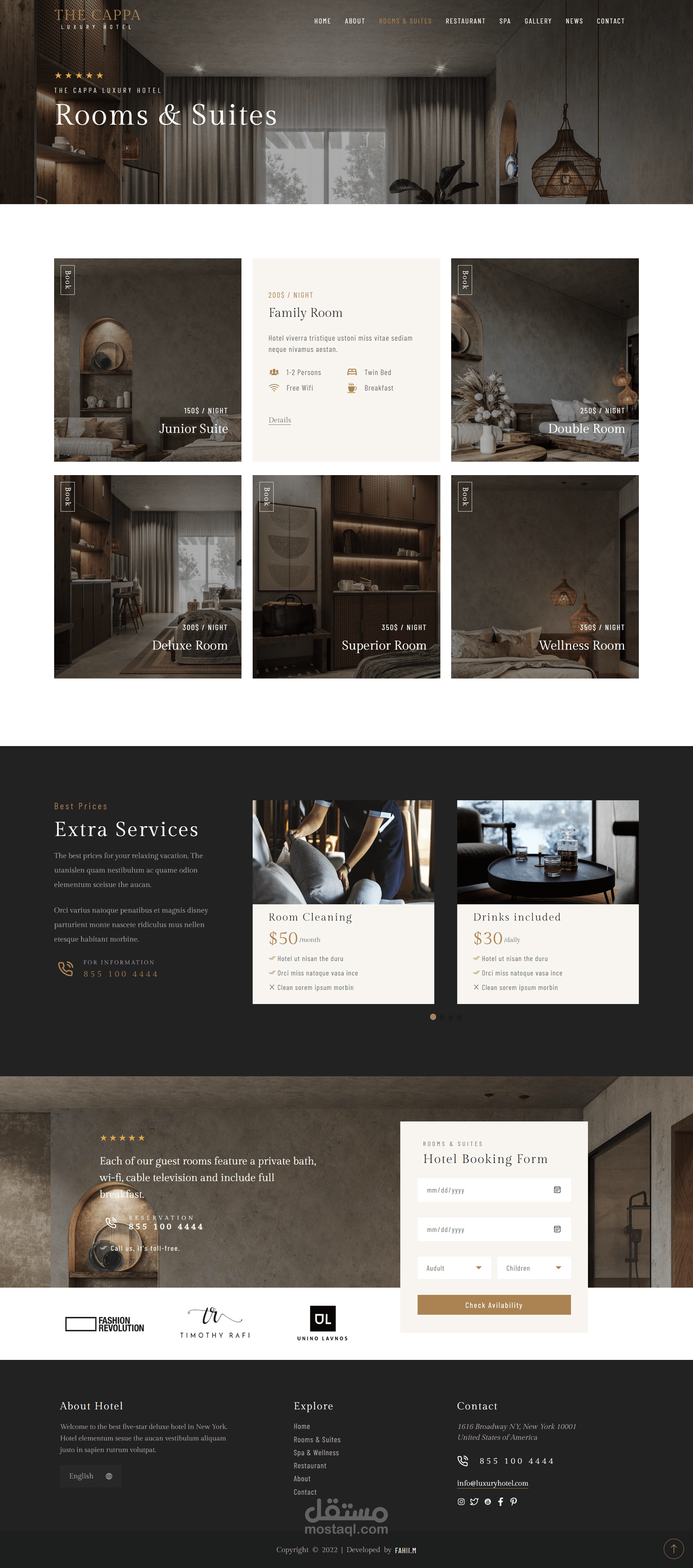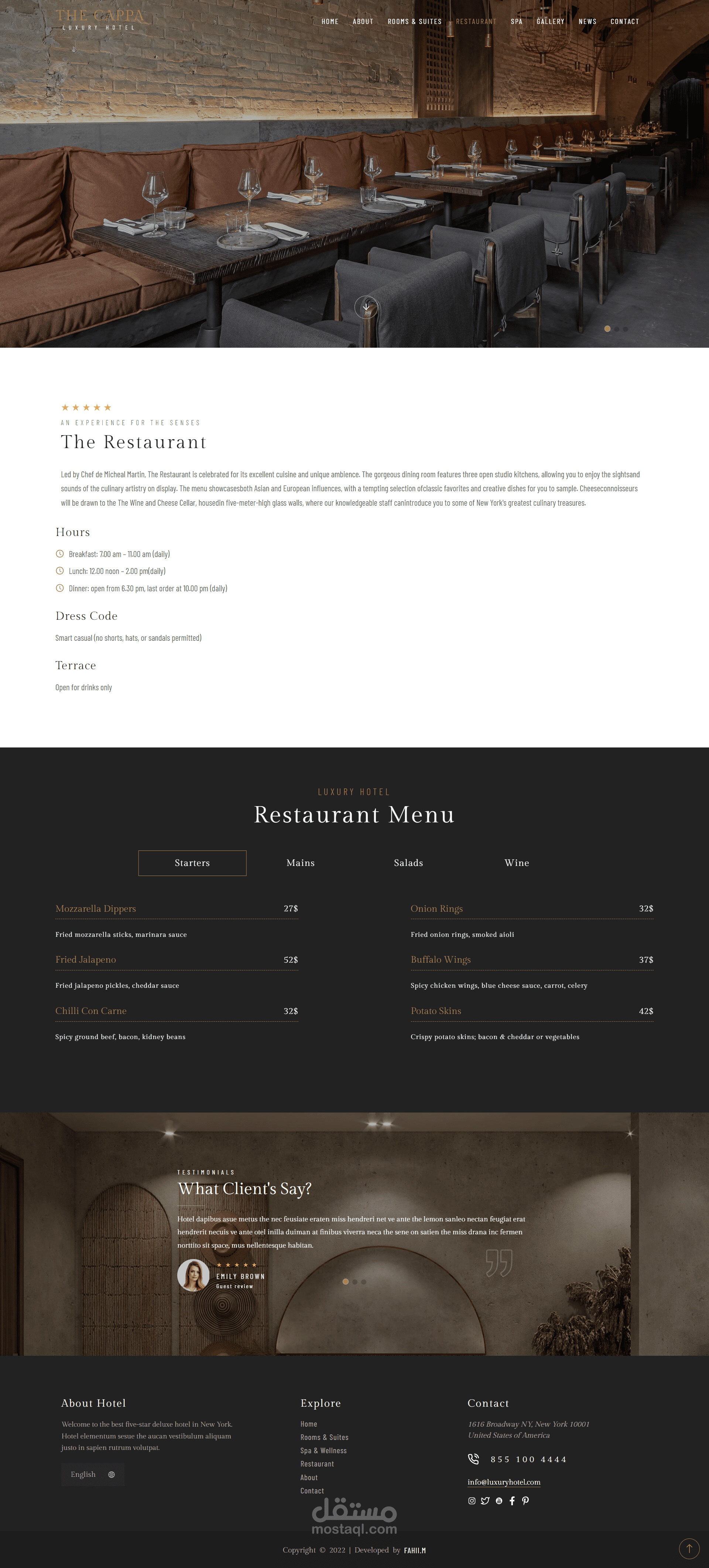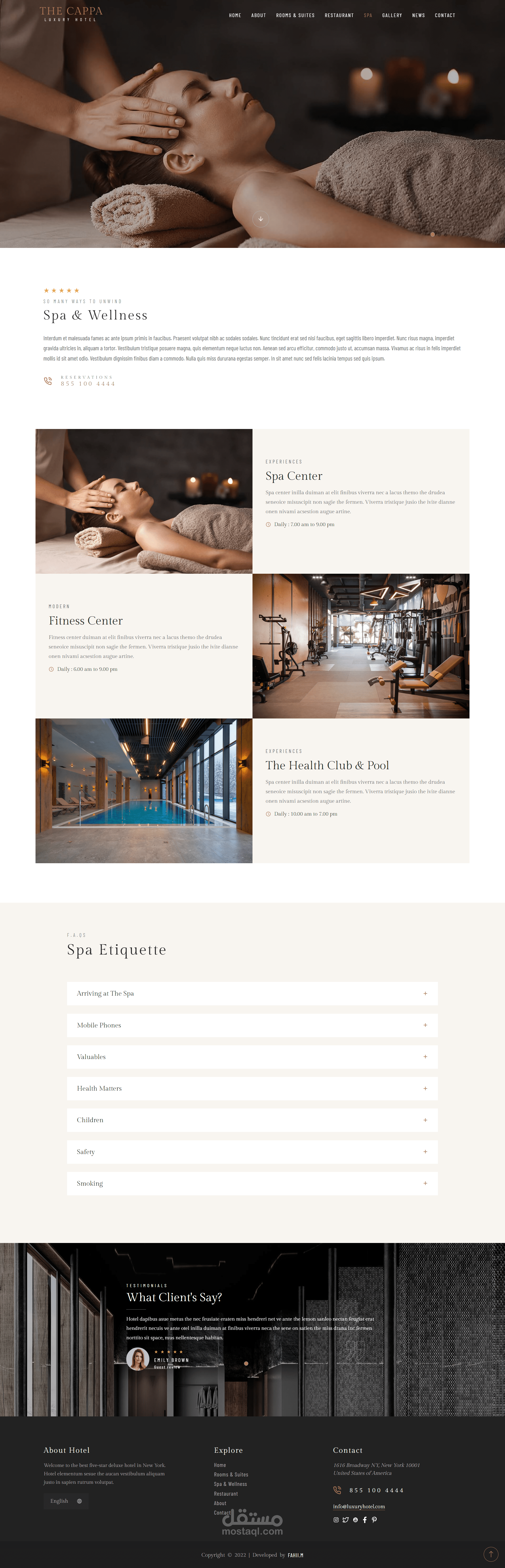 The project Helps any Hotel to show his identity, Luxury services, and rules. the hotel can show Rooms, Luxury Services, gallery page for hotel pictures, Spa page, Restaurant page, contact page, About page and any thing related to hotel you will find a place to display the data in \n the Project made by css3 and html5, there is many animations and sooth transition using css3 features, in main parts i used flex-boxs to align and handle small boxes, but the main structre of the pages build by using Bootstrap 5 Grid system \n I've also used SCSS as a preprocessor language for css which make the coding much easier by using Mixins and PlaceHolders. the project is responsive on all screens ,\n Hope you like the project and hire me for build a similar one for you.,