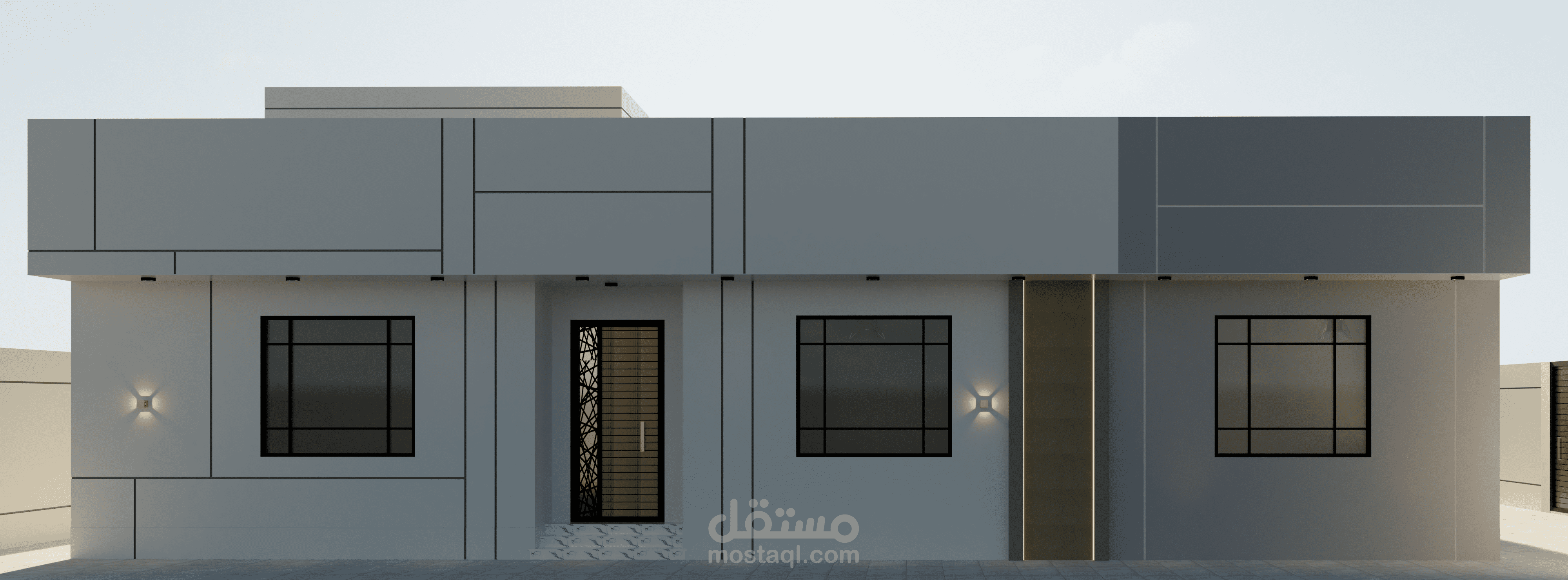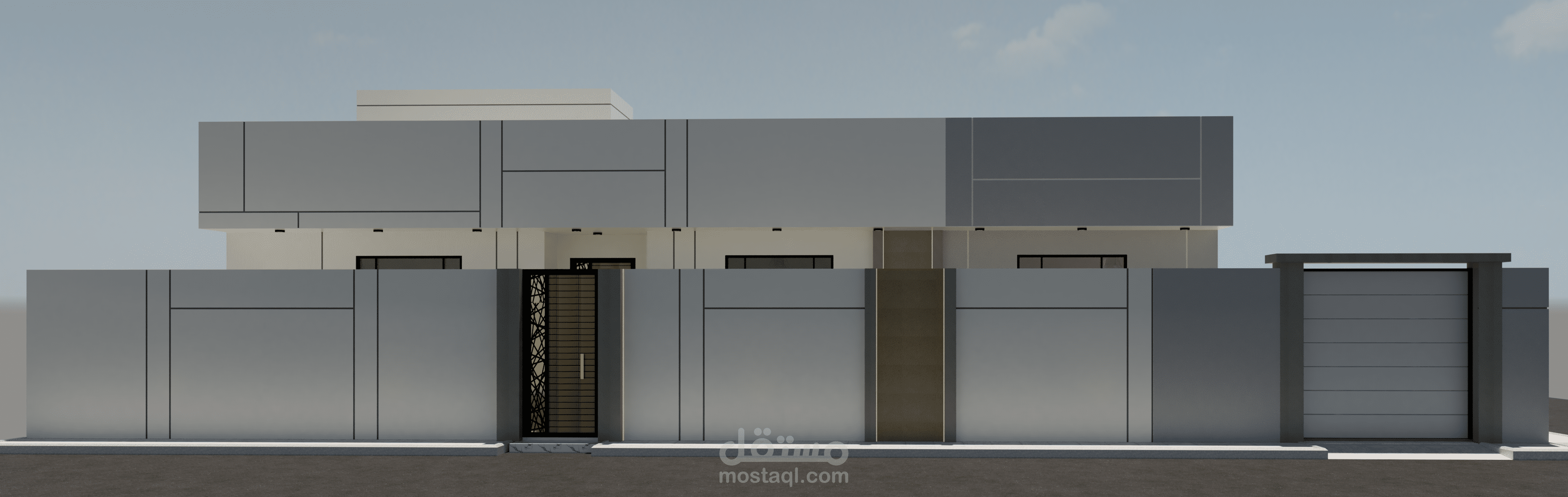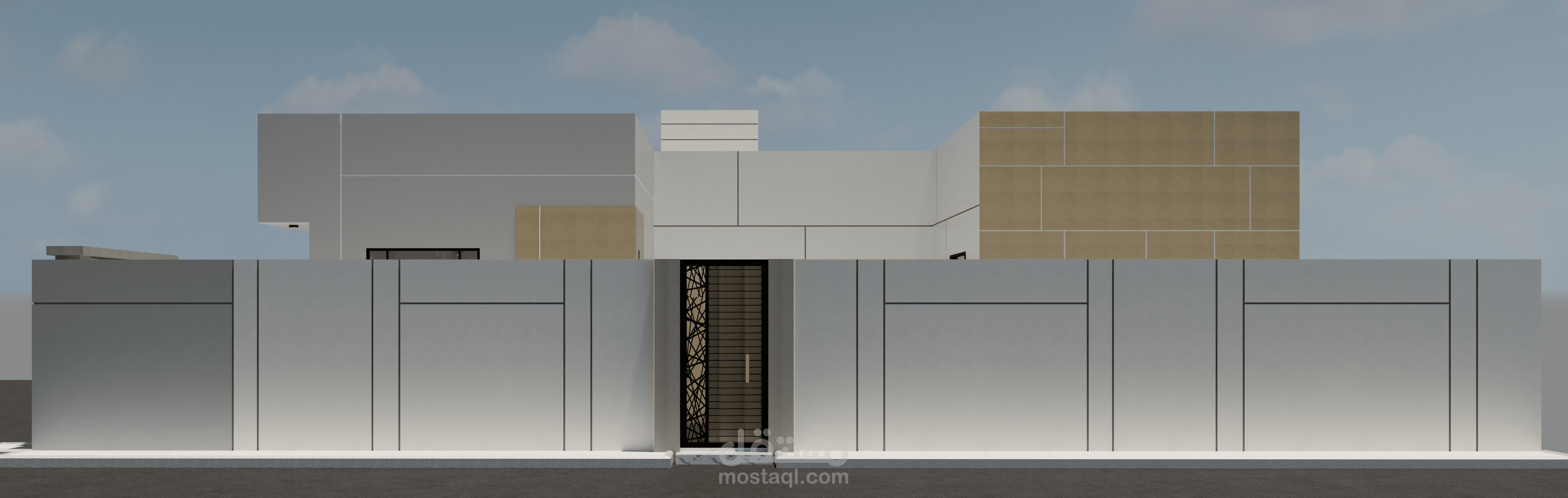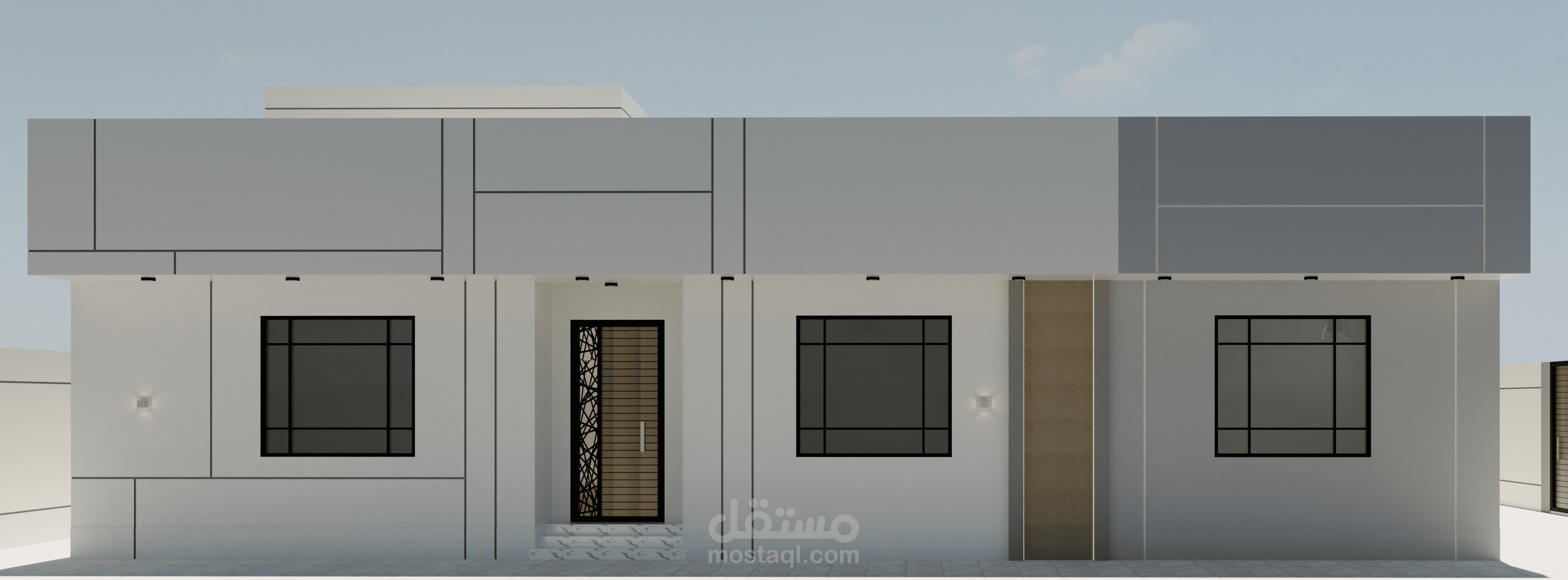 تصميم واجهات فيلا دور واحد مصممة بالكود الجديد وتم الاعتماد فيها على قروفات اللياسه ودهانات البروفايل