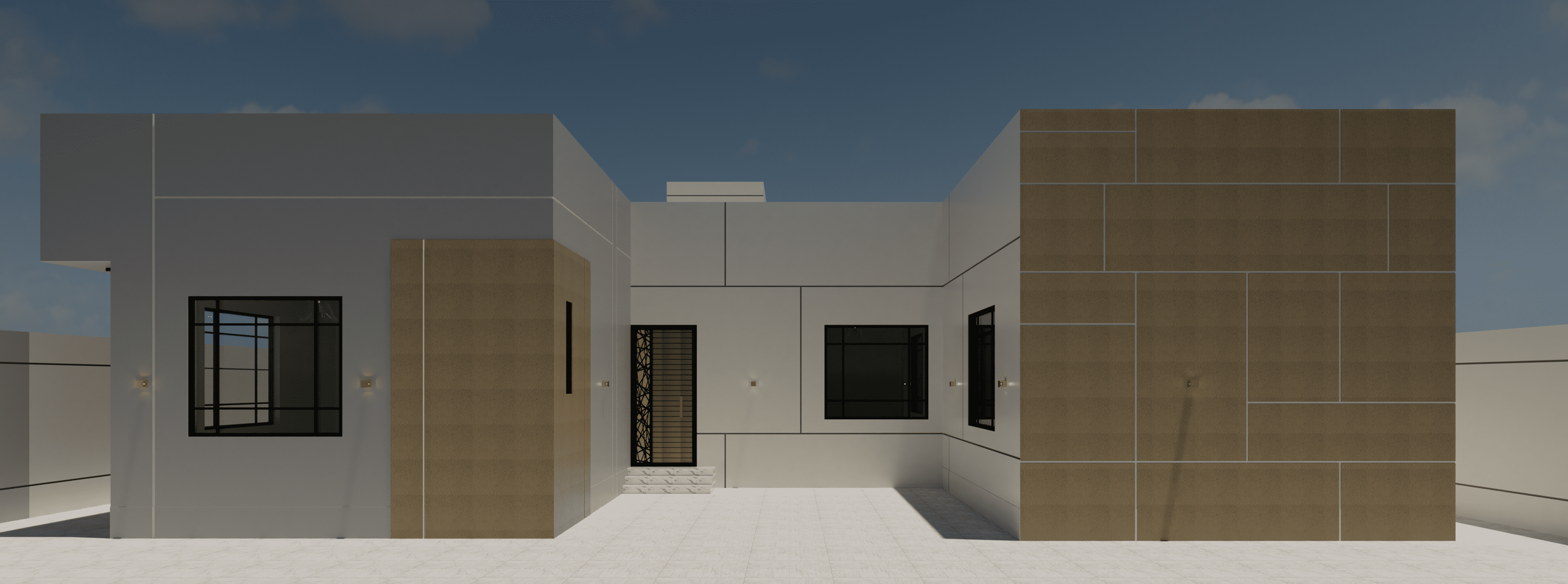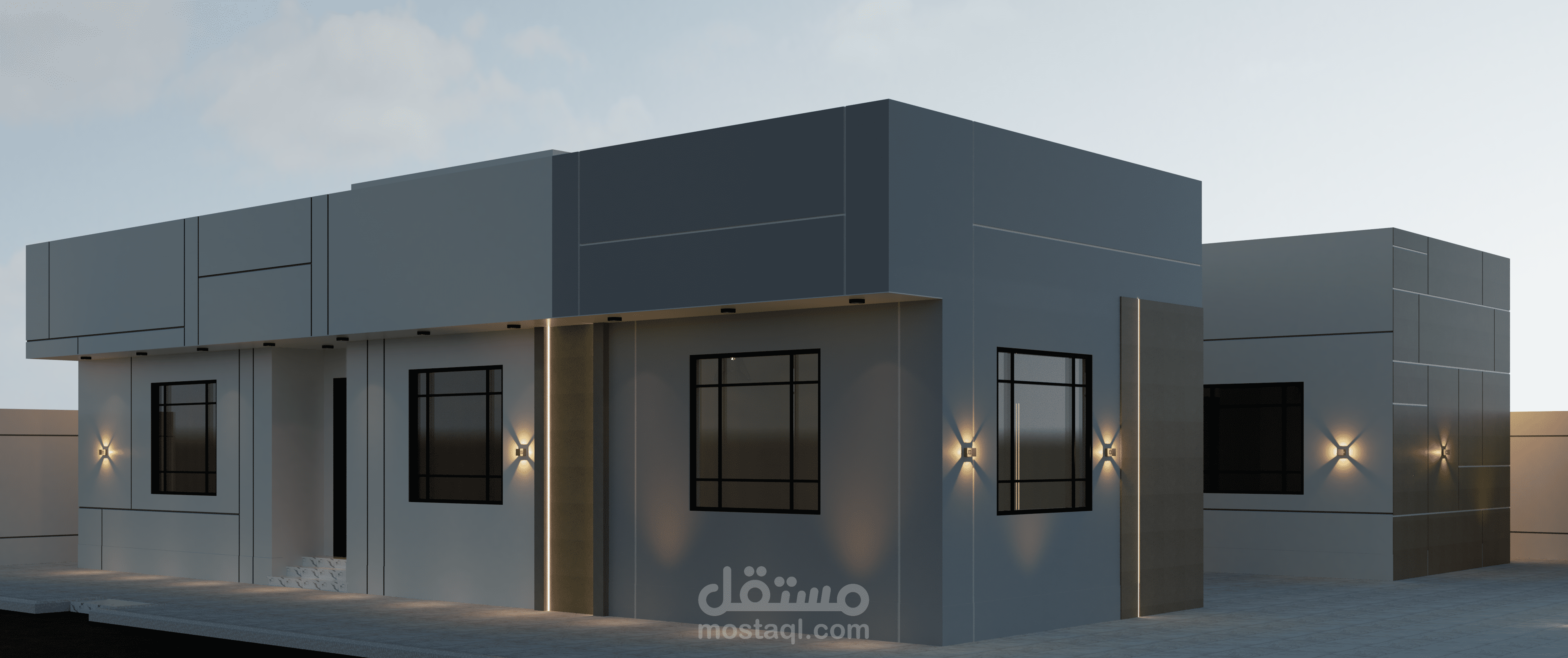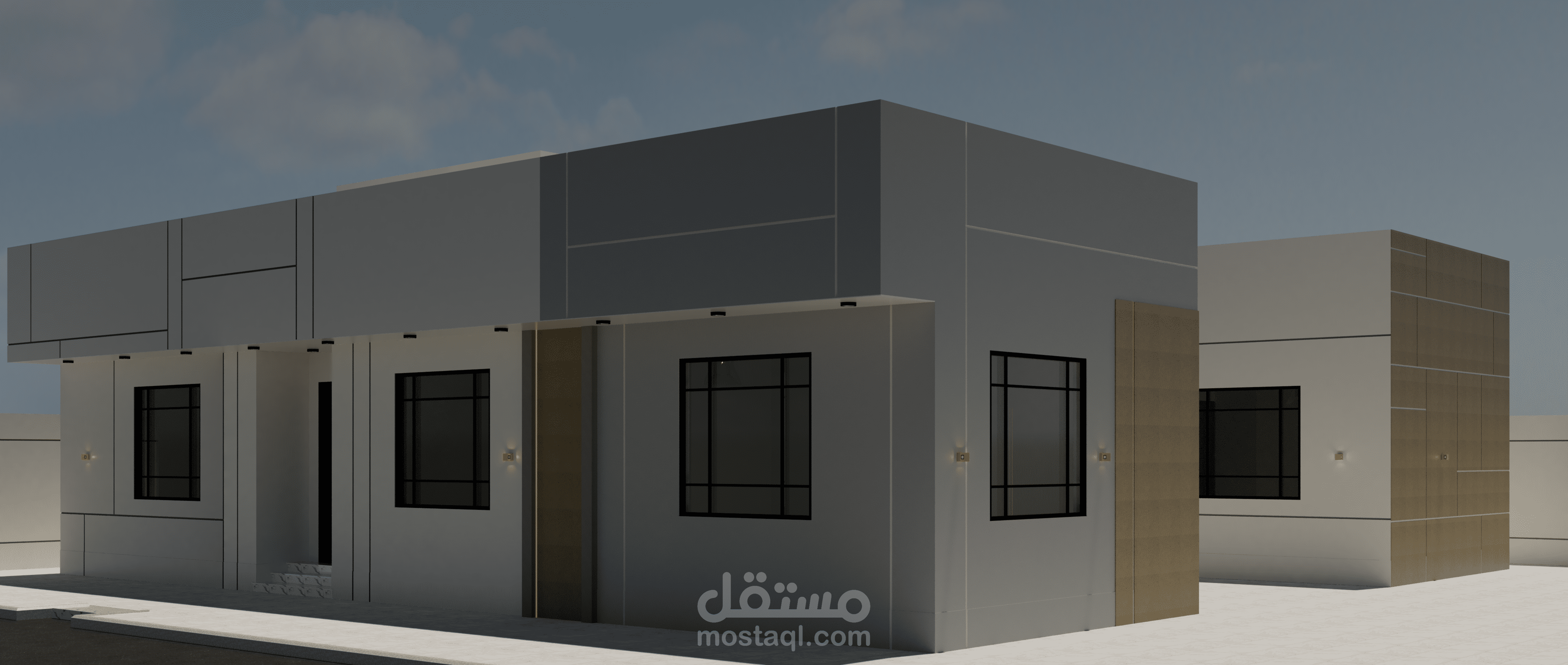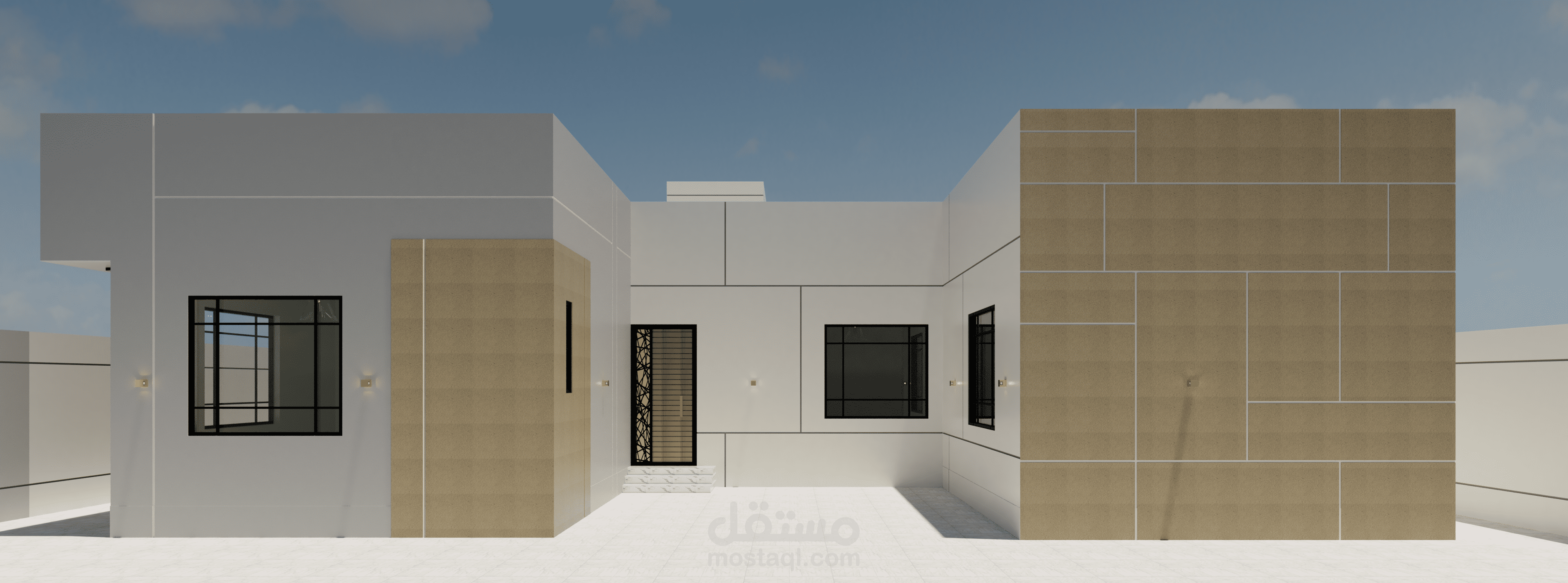 تصميم واجهات فيلا دور واحد مصممة بالكود الجديد وتم الاعتماد فيها على قروفات اللياسه ودهانات البروفايل