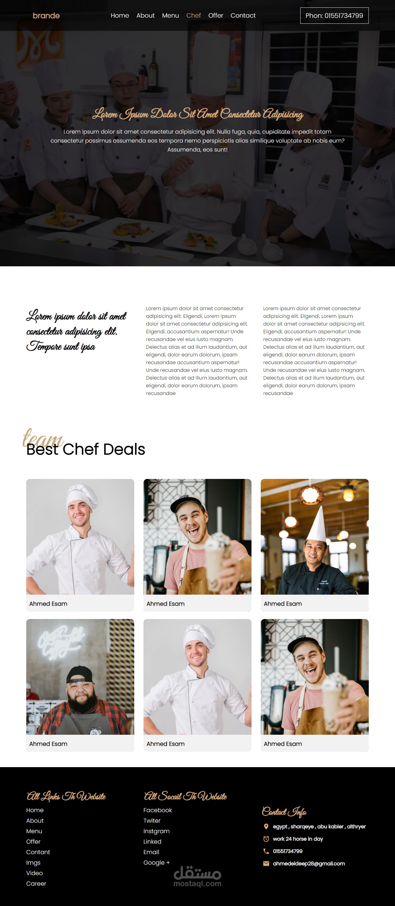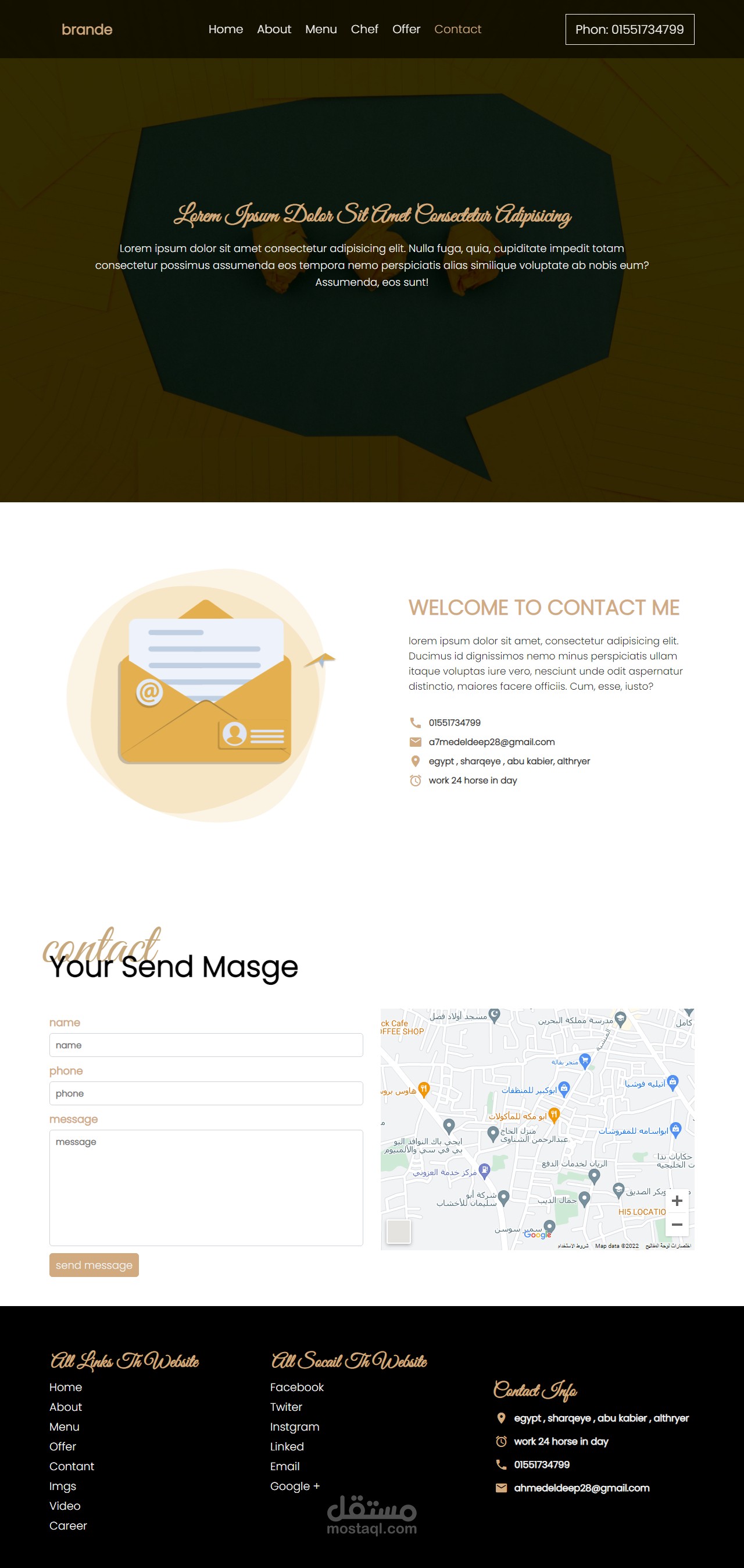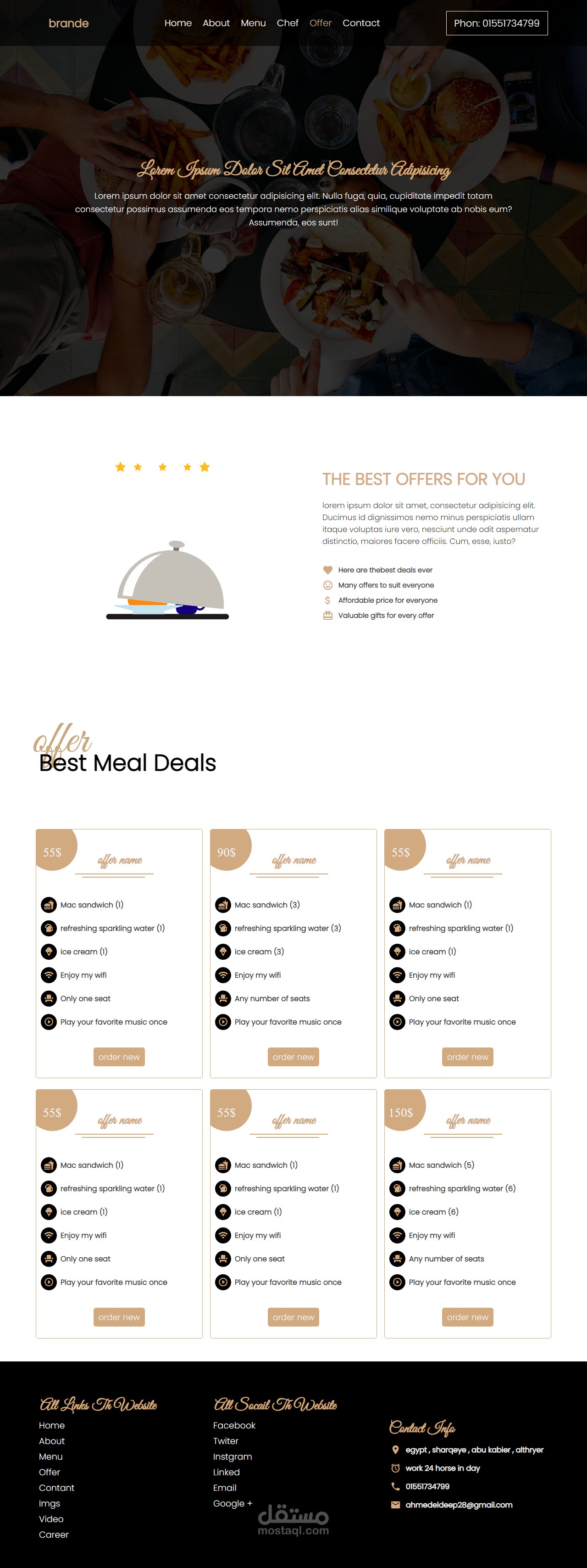 موقع مطعم وكافيتريا بشكل جذاب وعالي الأداء يعرض تفاصيل عن المطعم ويعرض الأطعمة التي يقدمها ويقدمها على الوجبات