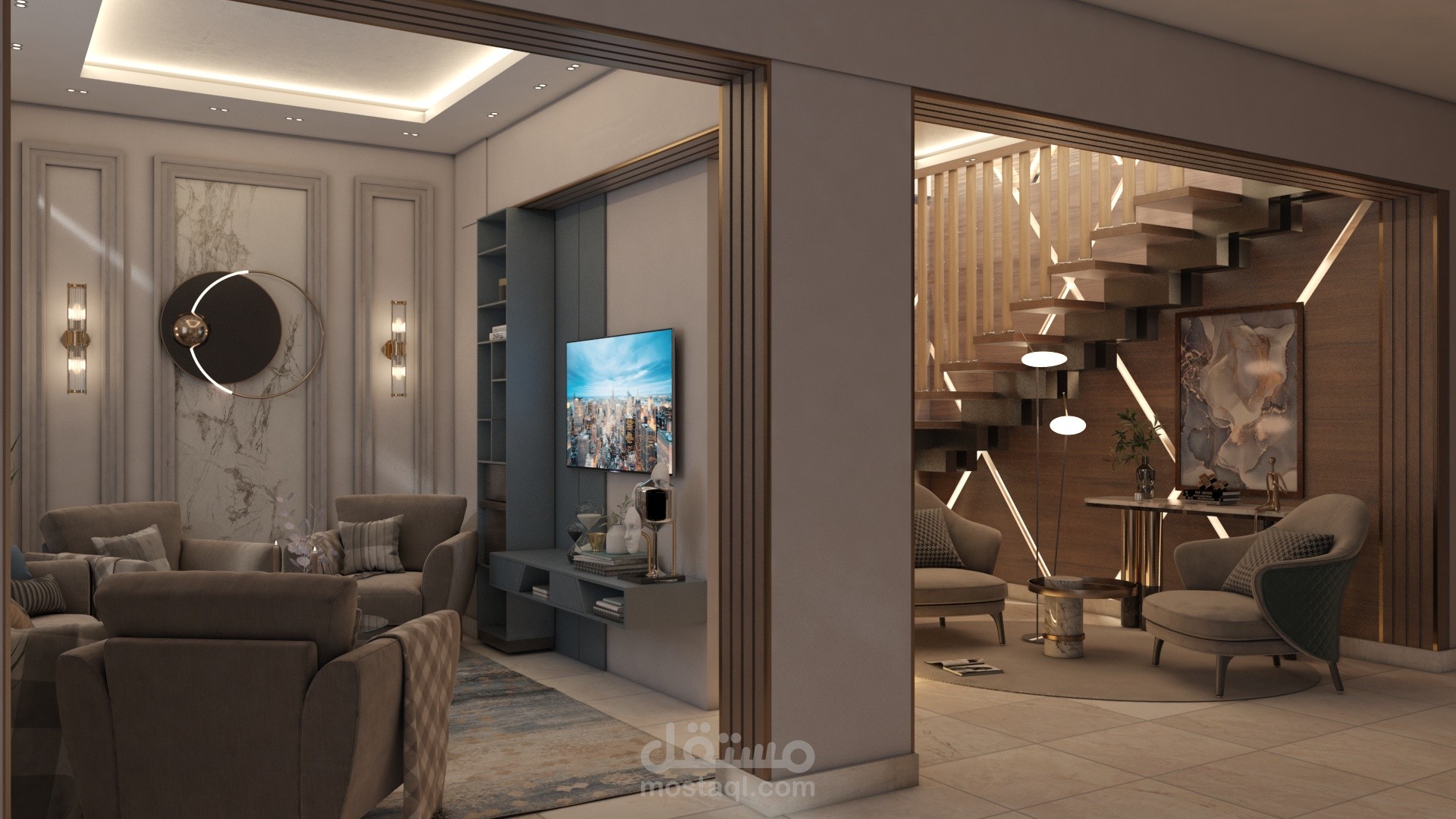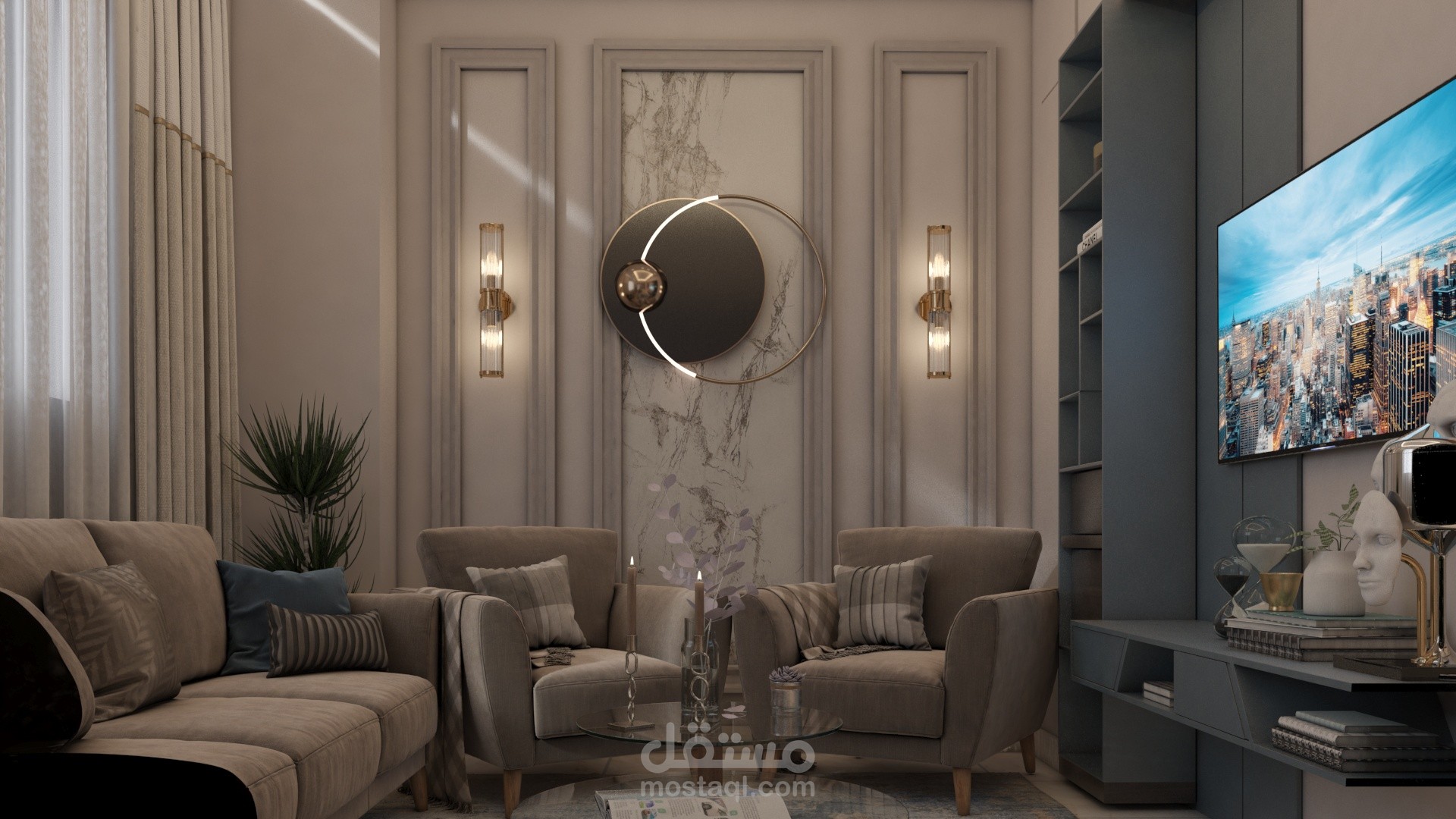 اعمل على برنامج 3dmax والفوتوشوب بدقه عاليه مهتم بالتفاصيل ومهتم بالتناسق اللونى واستعمال الالوان الباردة والساخنه فى التصميم