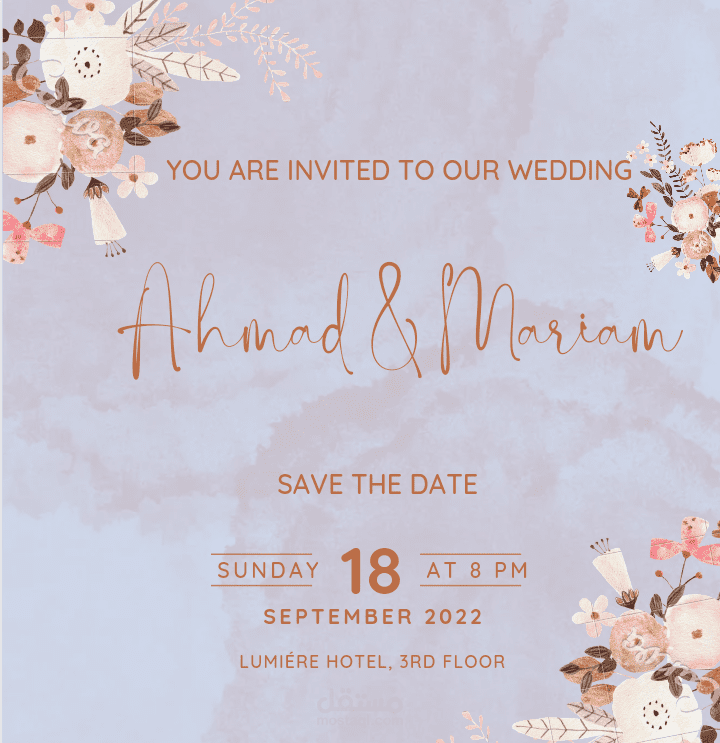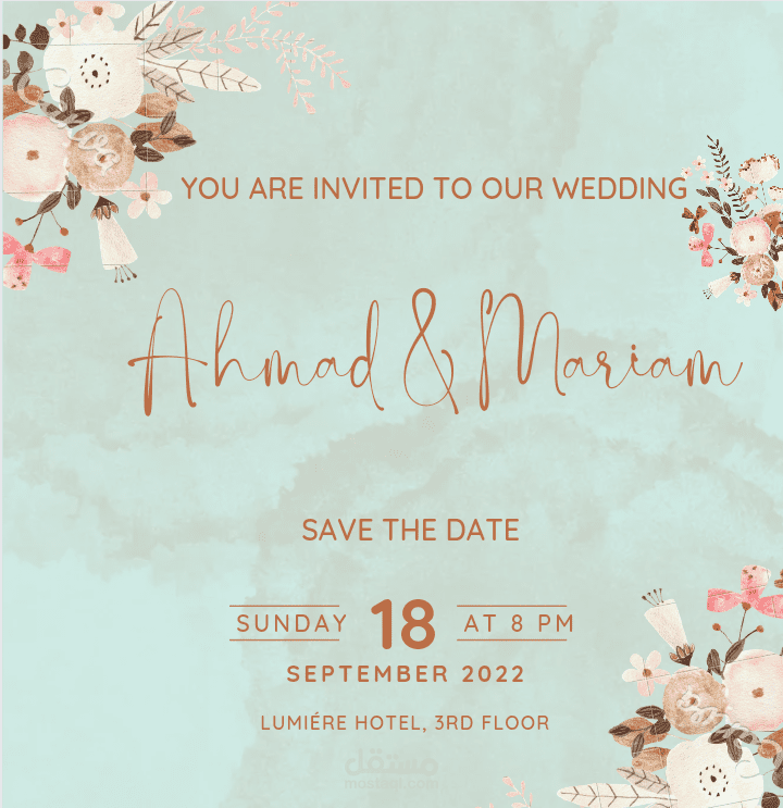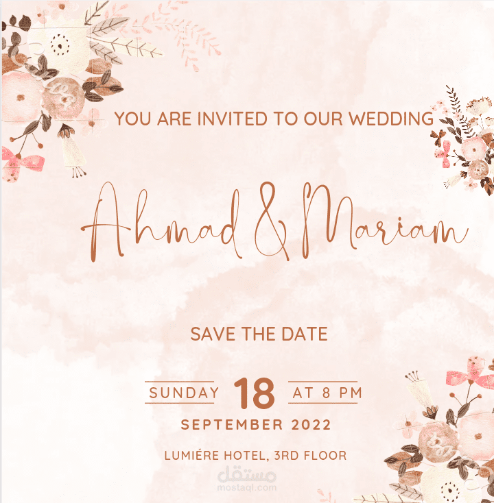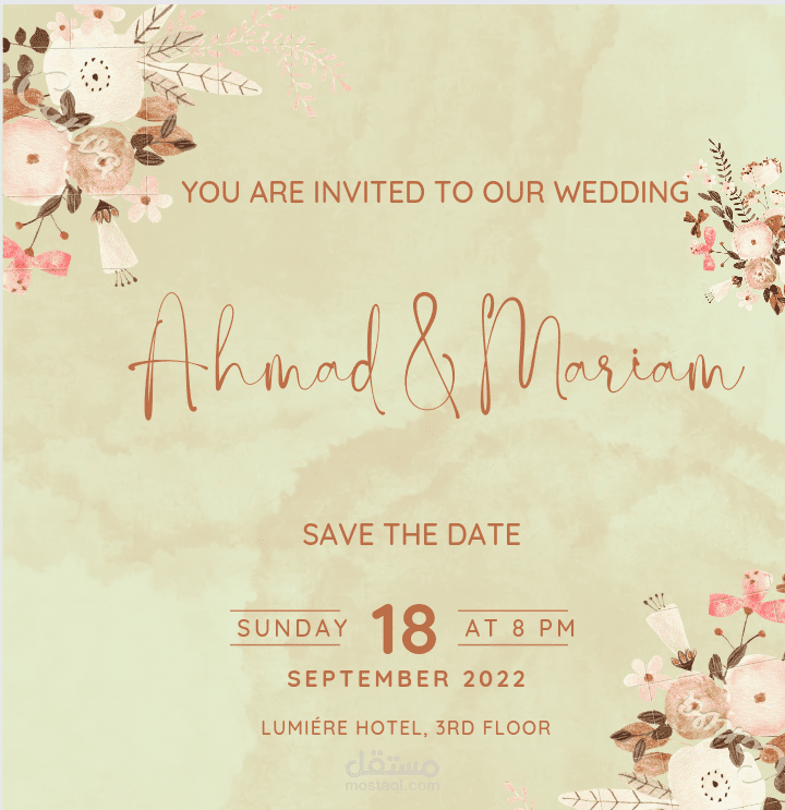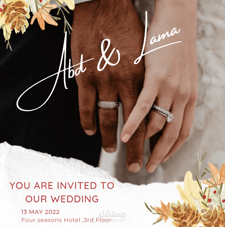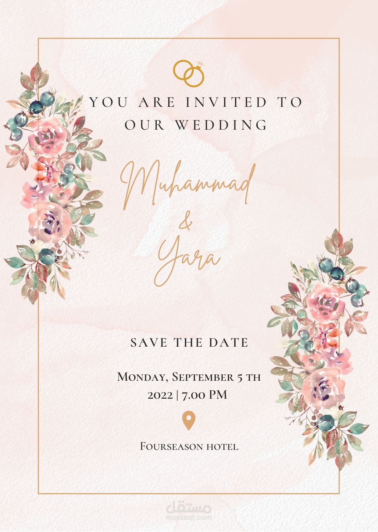 يتضمن : الاسم، التاريخ، العنوان، جمل مناسبة للدعوة