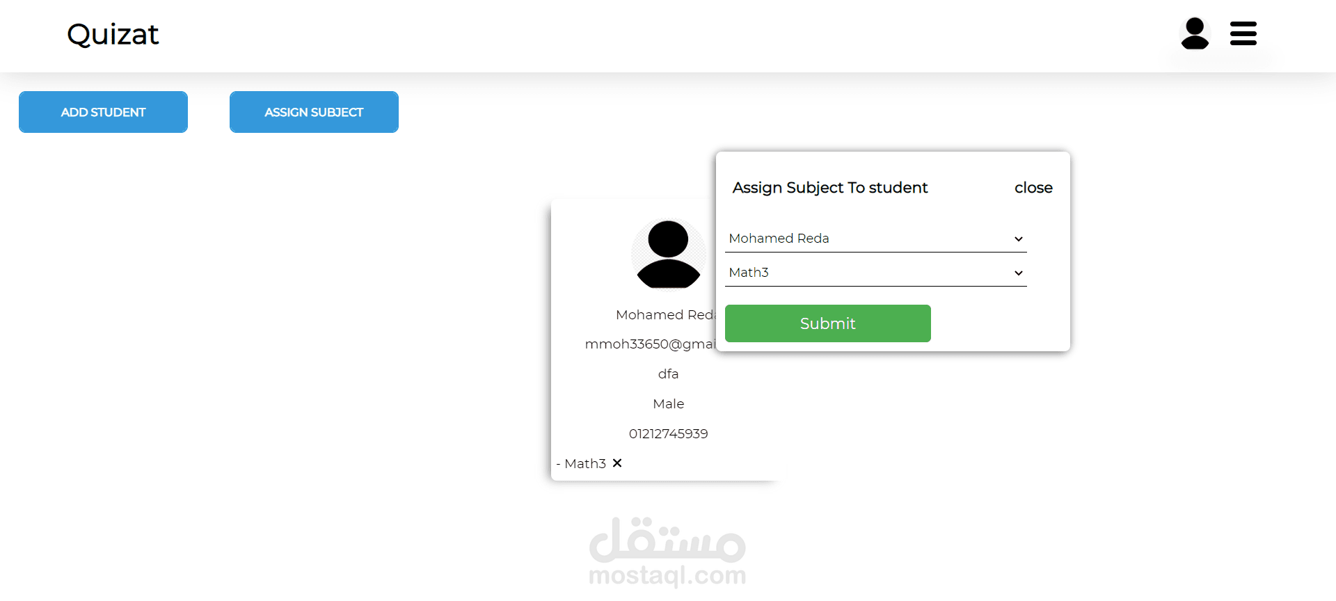 I made a quiz system app that can admin only manage teachers accounts and subjects and teachers only can manage students accounts and quizzes and its questions and see students data and degrees and print it and if student submit quiz he can't do it, again and there are time for each quiz if it finishes quiz submit automatically and calculate the degree of it on student choices before submission. I used html css pure js php mysql.