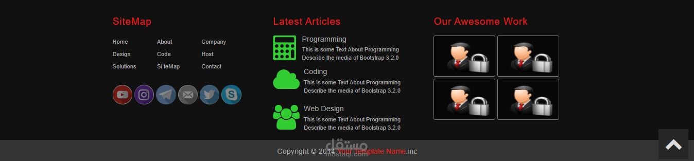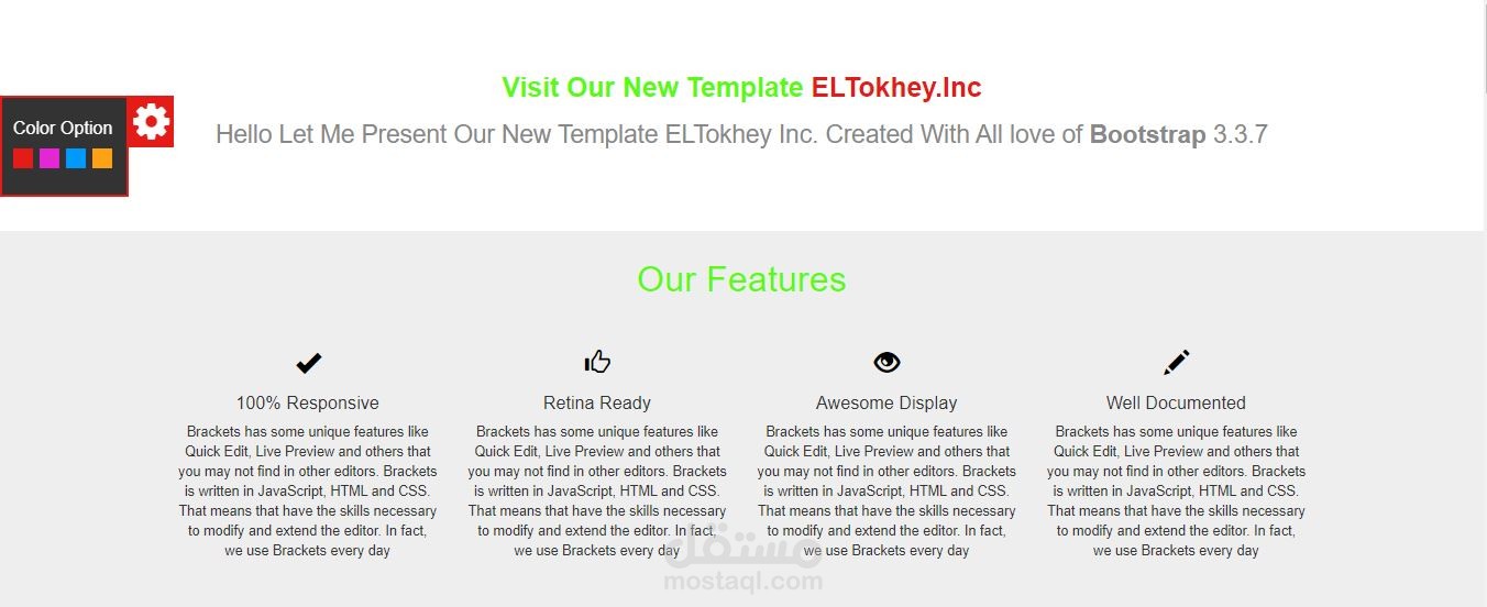 هذا الموقع تم تصميمه استخدام تقنيات الويب مثل Bootstrap3 , Html , Css , animate css library, fontawesome library , Jquery , Wow js Library