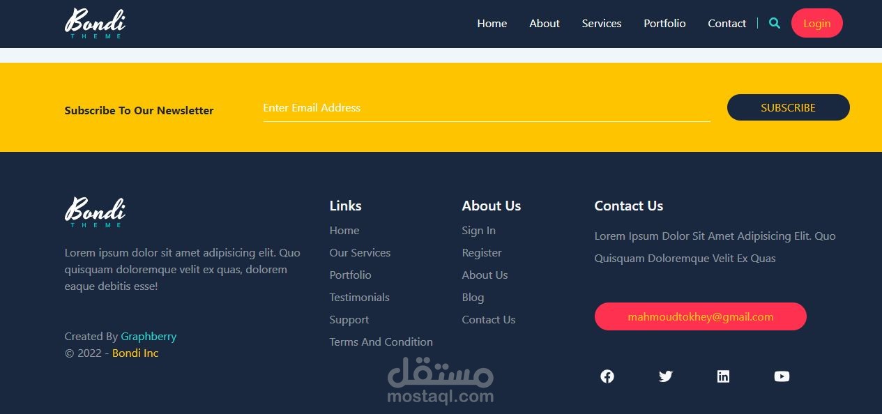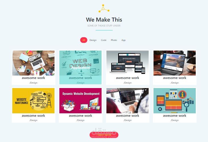 هذا القالب تم تصميمه باستخدام تقنيات الويب وهي Bootstrap3 , Html ,Css , Javascript , Ow-Carousel library , magnific-popup.css library , Jquery