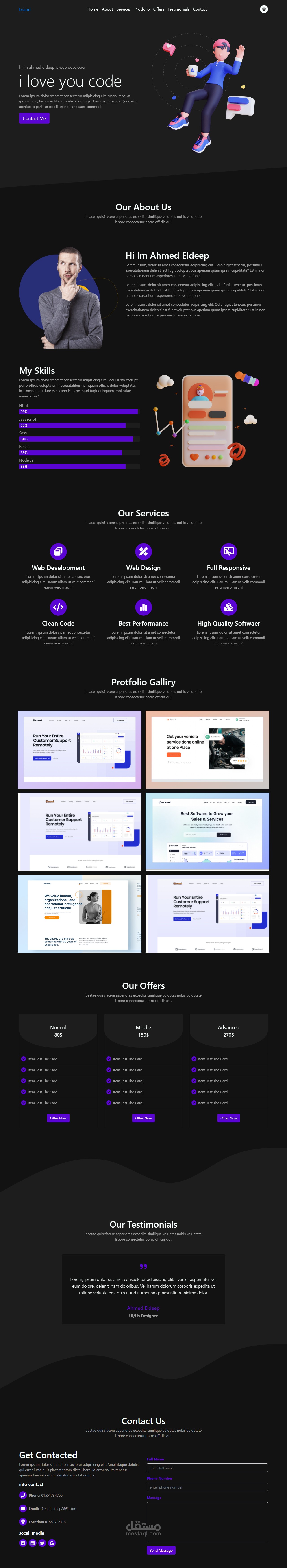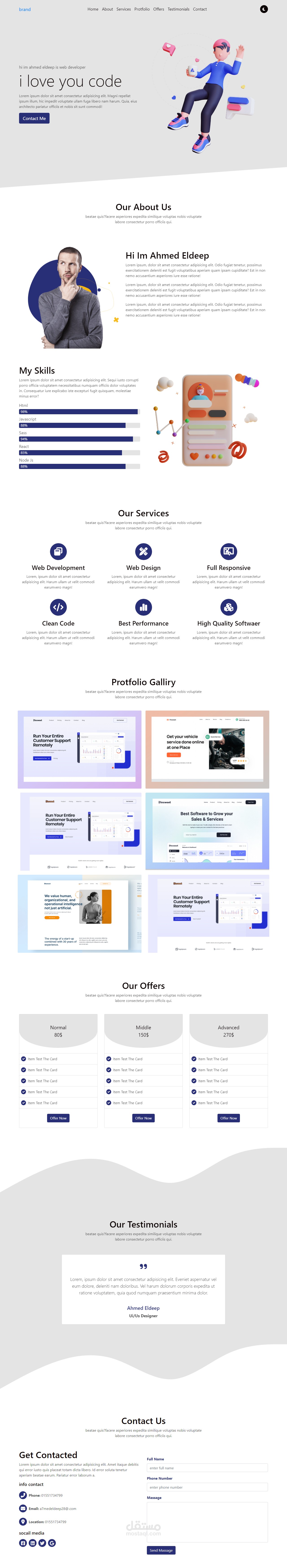 الموقع عباره عن صفحة واحده يوجد بها بعض الاقسام التي تساعد في تعريف صاحب الموقع وعرض اعمالة وخدماته