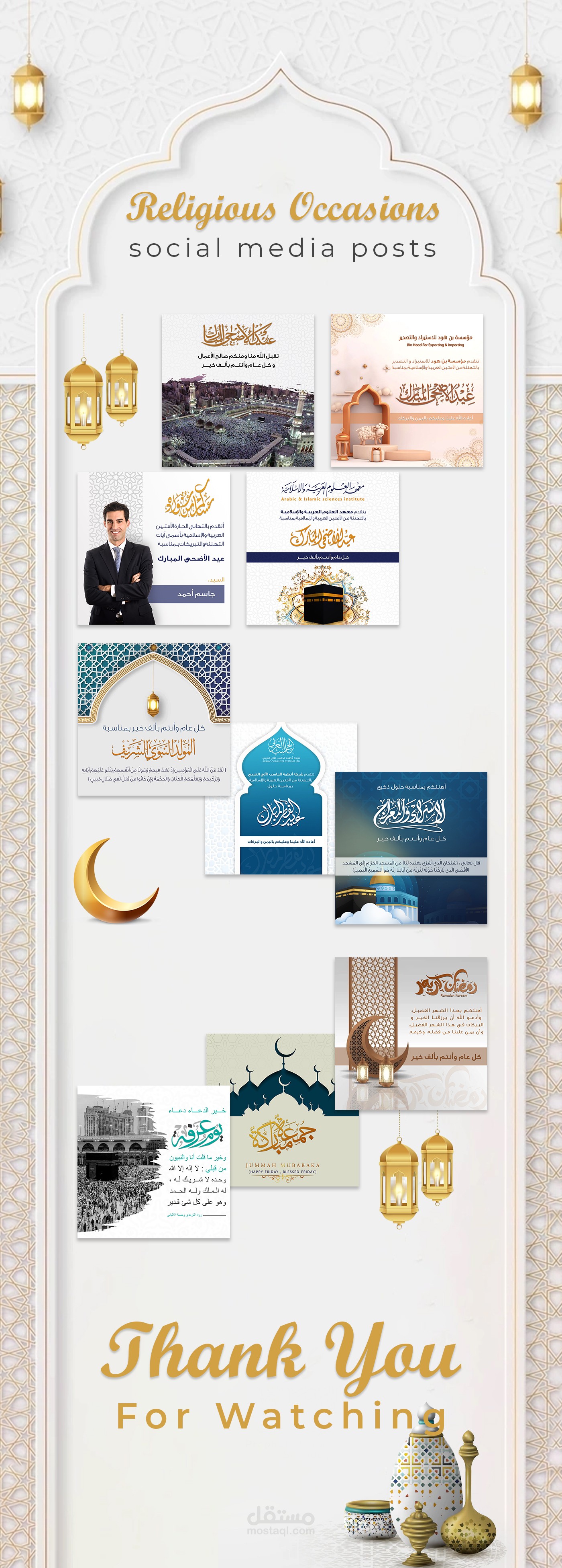 تصميم منشورات ( بوستات ) سوشيال ميديا لمناسبات الدينية مختلفة .