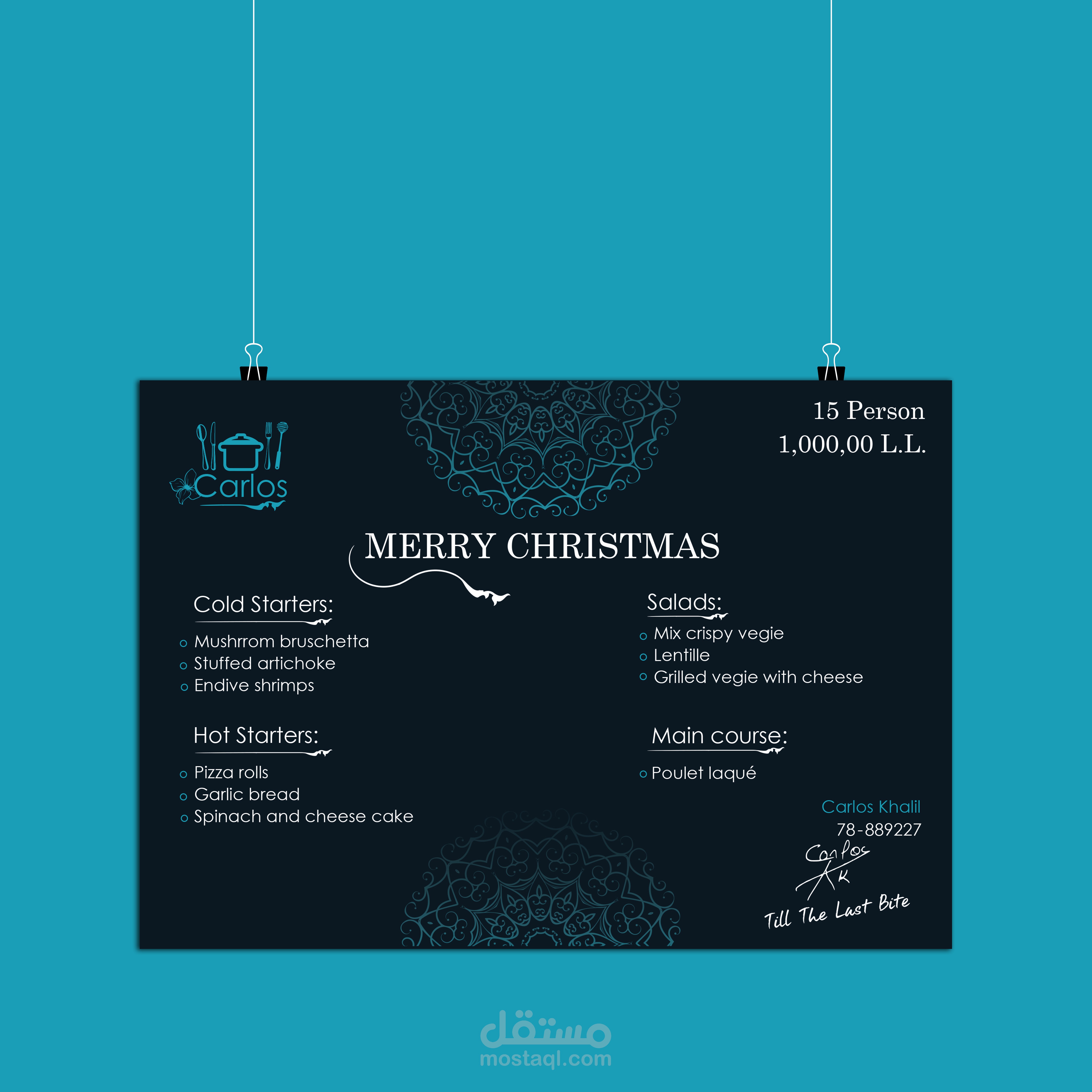 Carlos Catering is an R&B service, I worked on the branding, Business card, letterhead and also the social media accounts, along with a photoshoot.