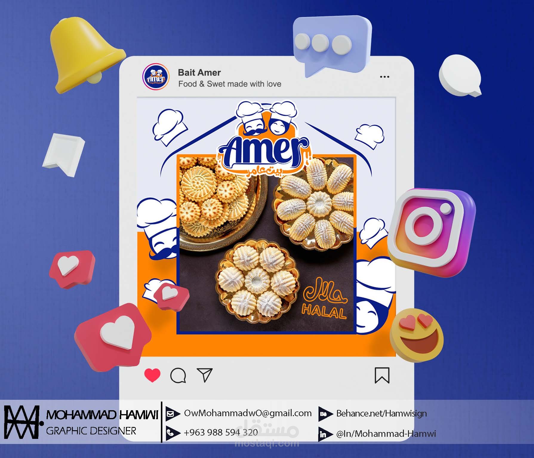 تصميم هوية بصرية لمطبخ مختصّ بالمأكولات والحلويّات المنزليّة الحلال في كندا.
