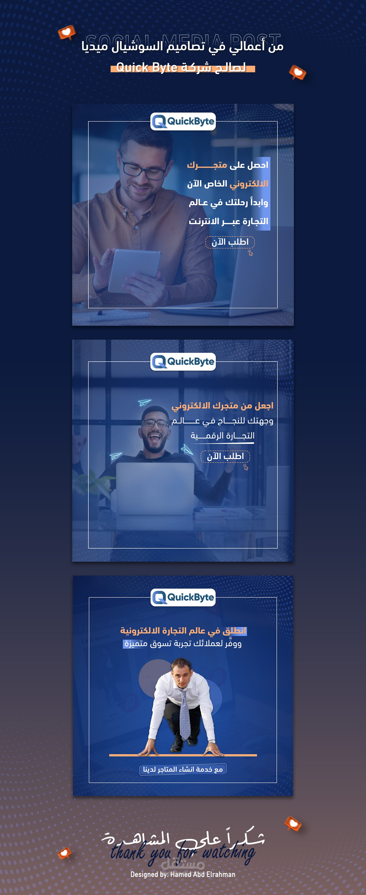 تصاميم ابداعية واحترافية باستخدام الفوتوشوب والاليستريتور لصالح شركة كيو كود "Quick Byet"، لاستخدامها في الاعلان على مواقع السوشال ميديا - فيس بوك وانستغرام.