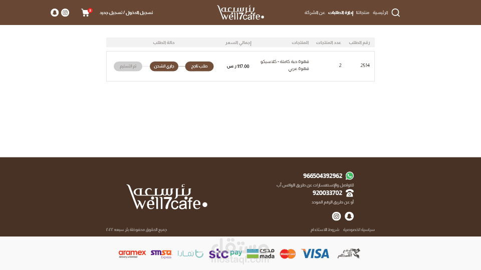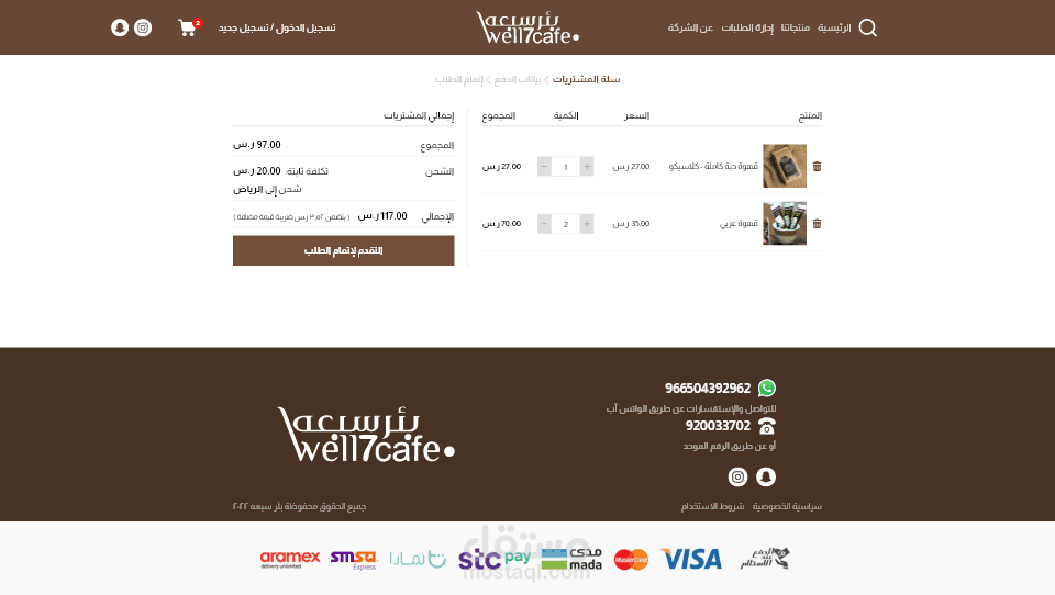 well7cafe هو موقع لبيع القهوه للمستخدمين و السماح لهم بالطلب و الدفع اونلاين كما انه يمكن التواصل من خلاله بخدمه العملاء