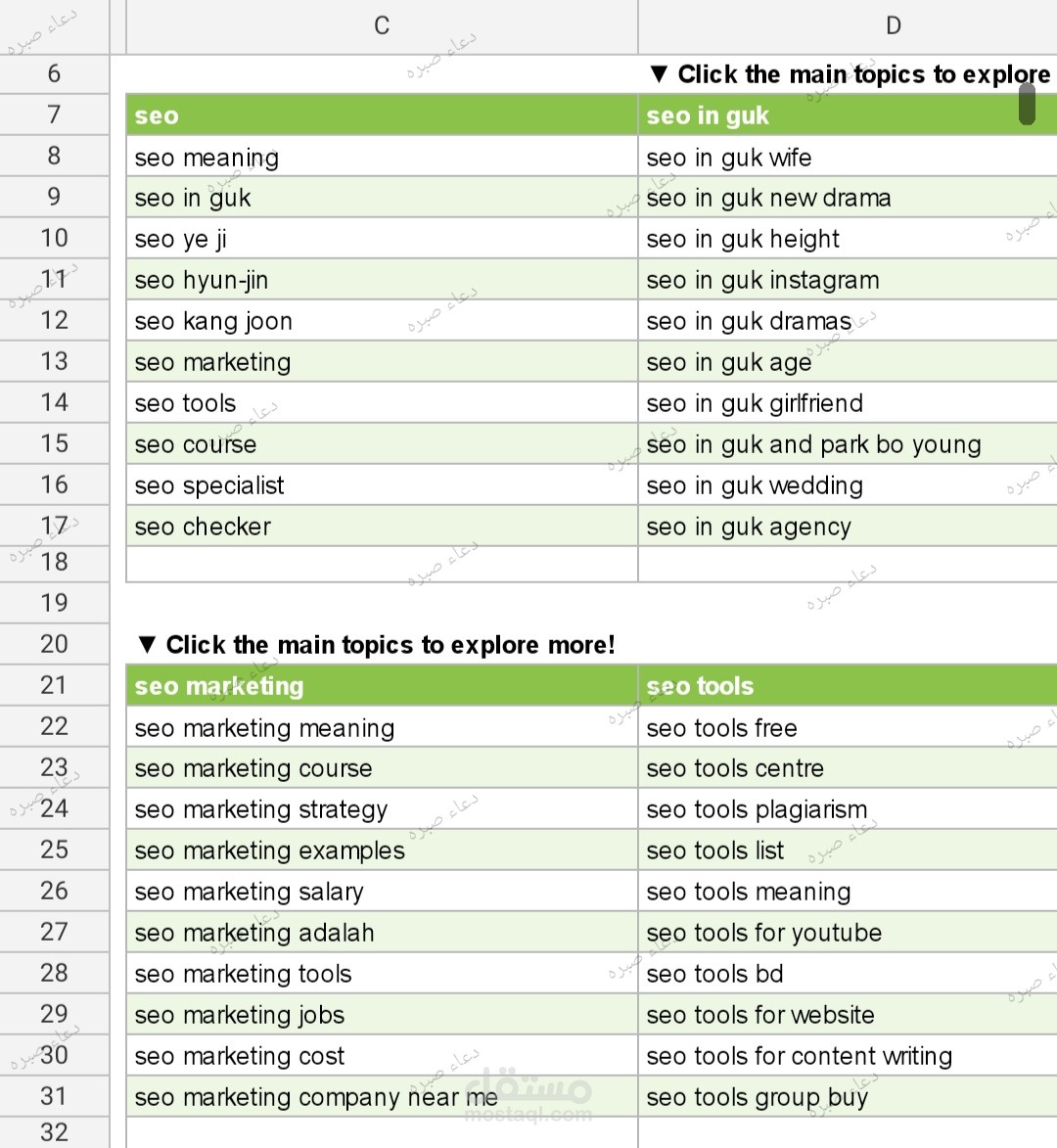 تم عمل بحث عن كلمات مفتاحية للعديد من المواقع والمتاجر لاستخدامها في المقالات والوصف التسويقي للمنتجات.