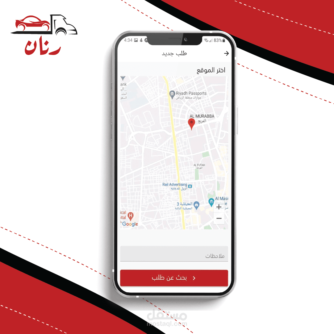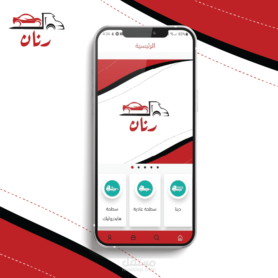 تطبيق رنان هو أحد التطبيقات التي يمكن للمستخدم طلب أي نوع من وسائل النقل بالمركبة (بيك آب ، بيك آب هيدرولوجي ...) لنقل سيارته التالفة أو غير التالفة إلى موقع الستارة