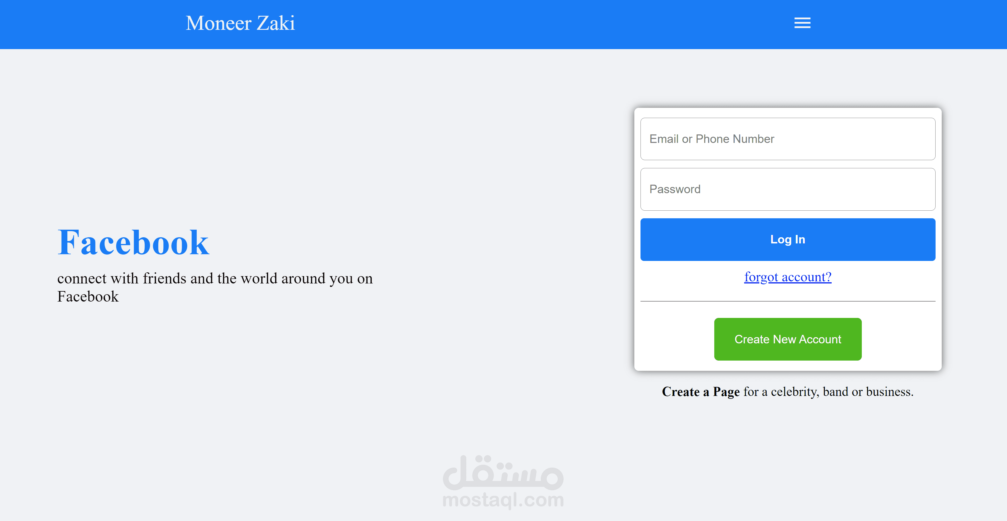 Facebook login page