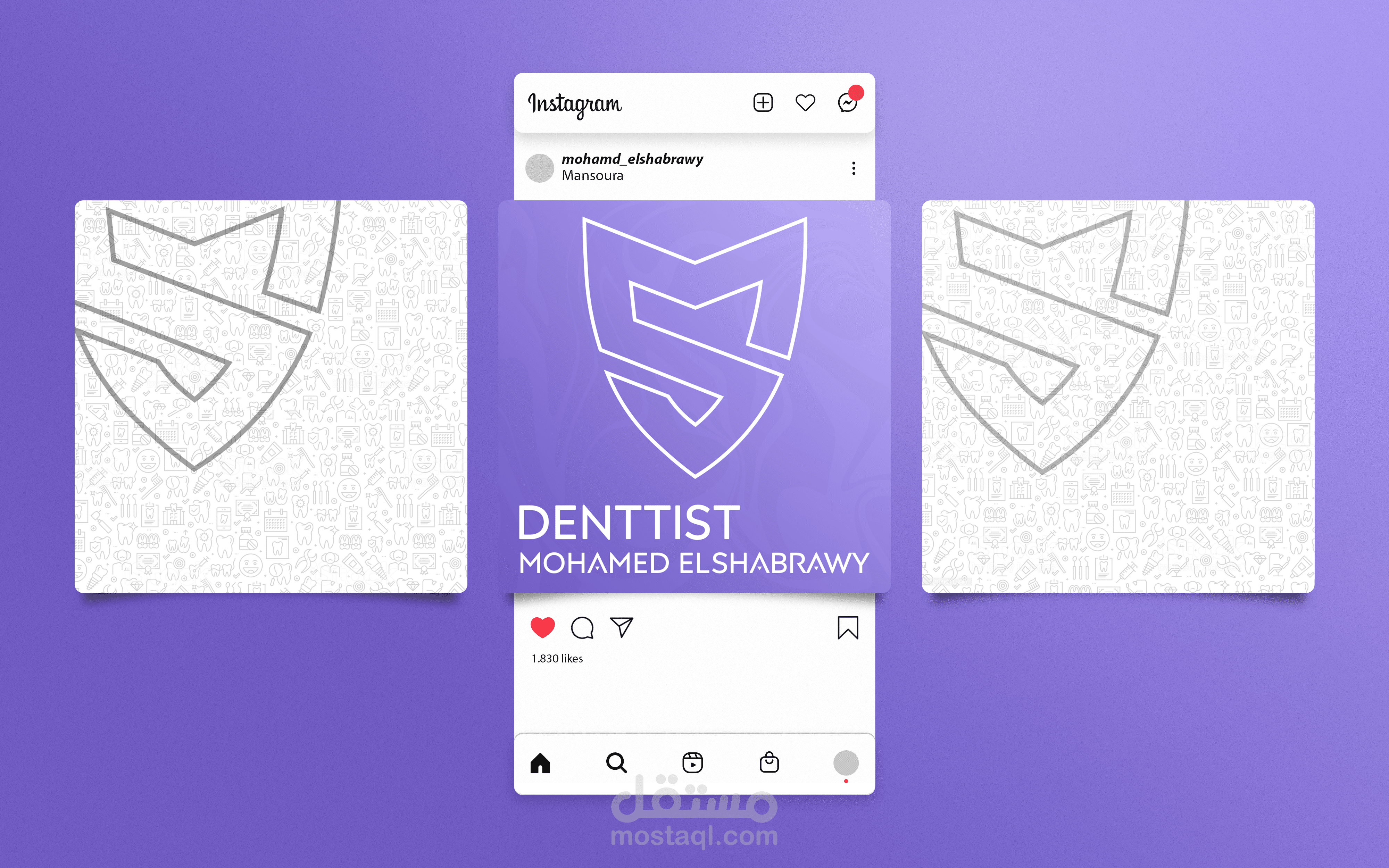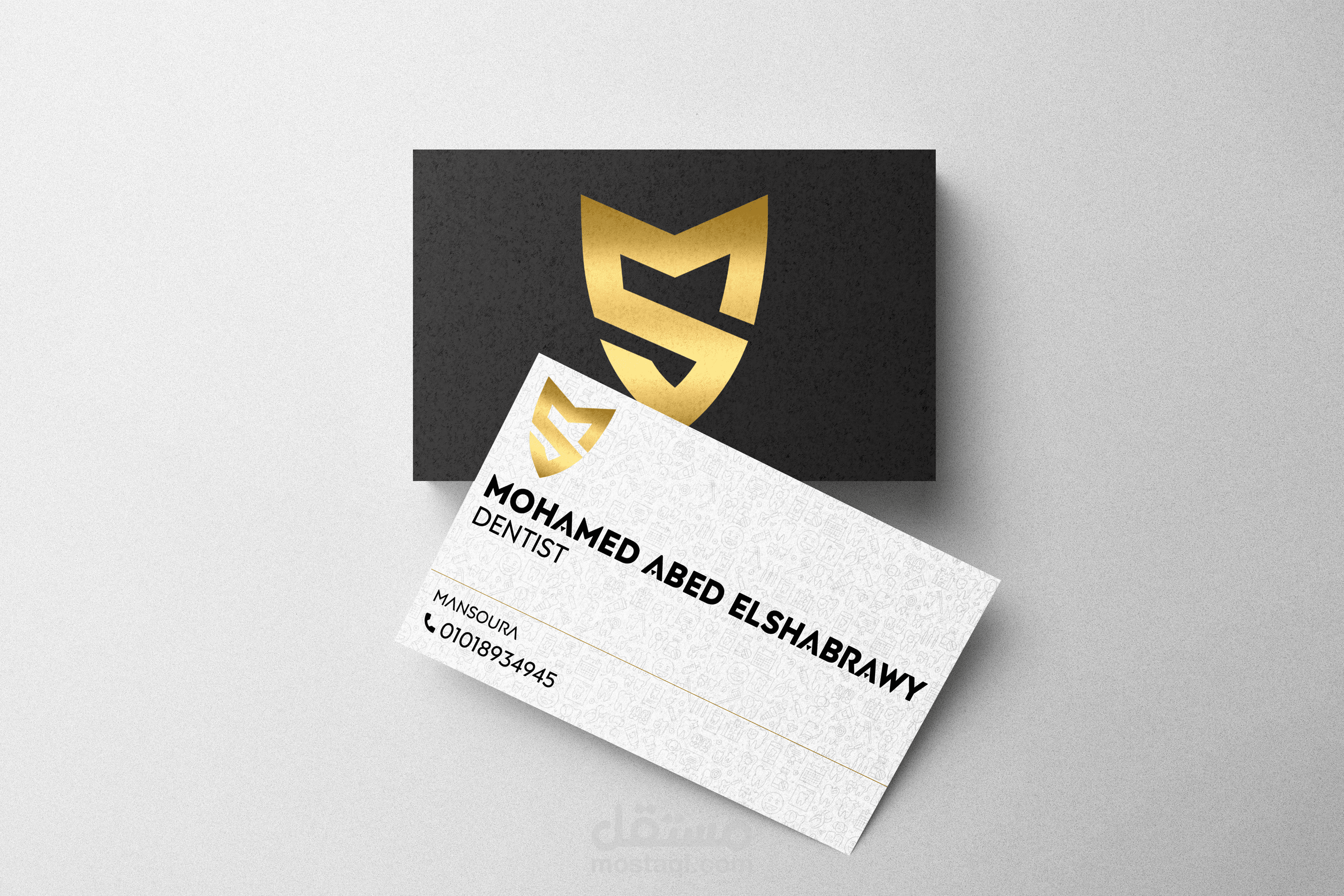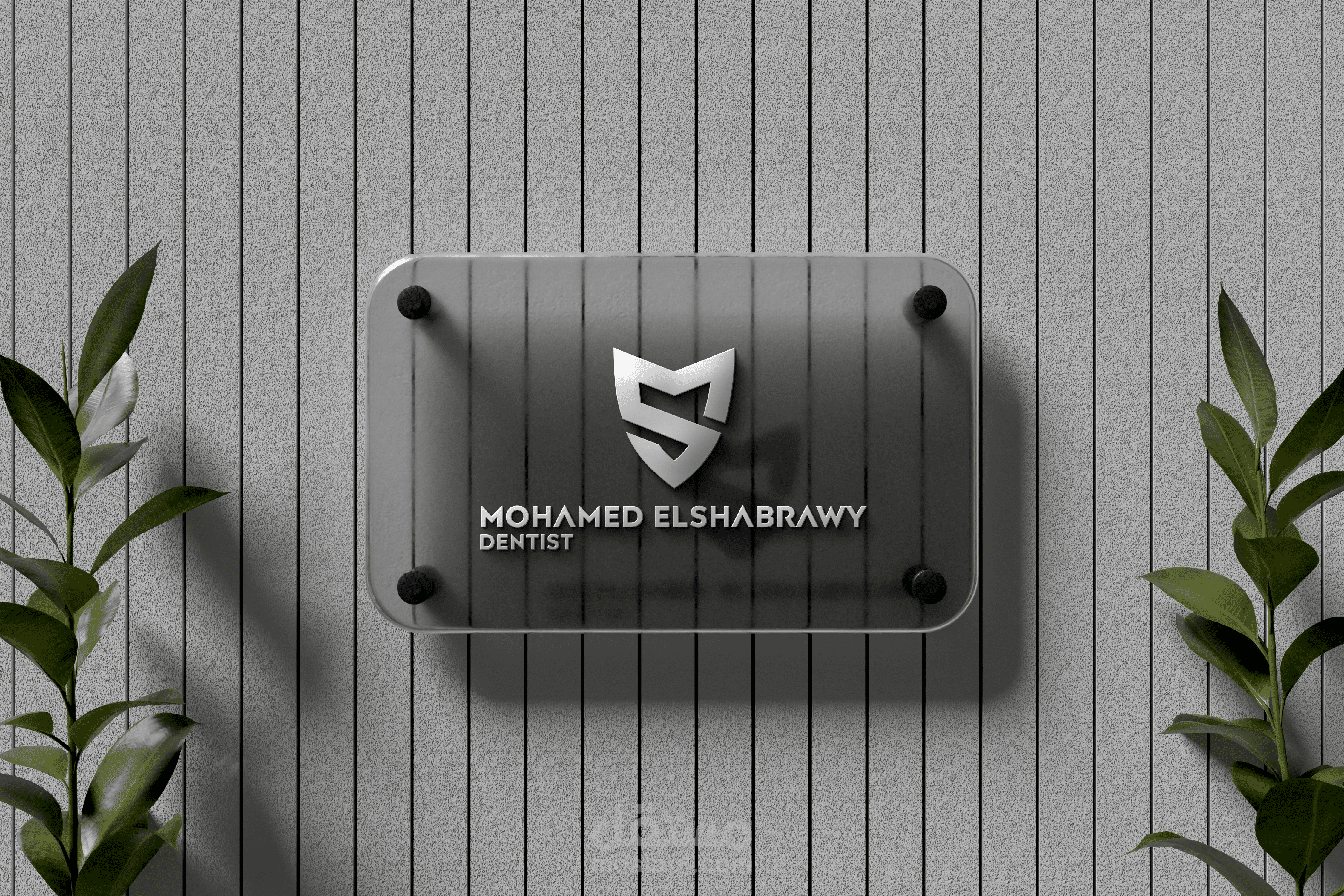 تصميم شعار طبيب أسنان مكون من اختصار للاسم M+S علي شكل درع
