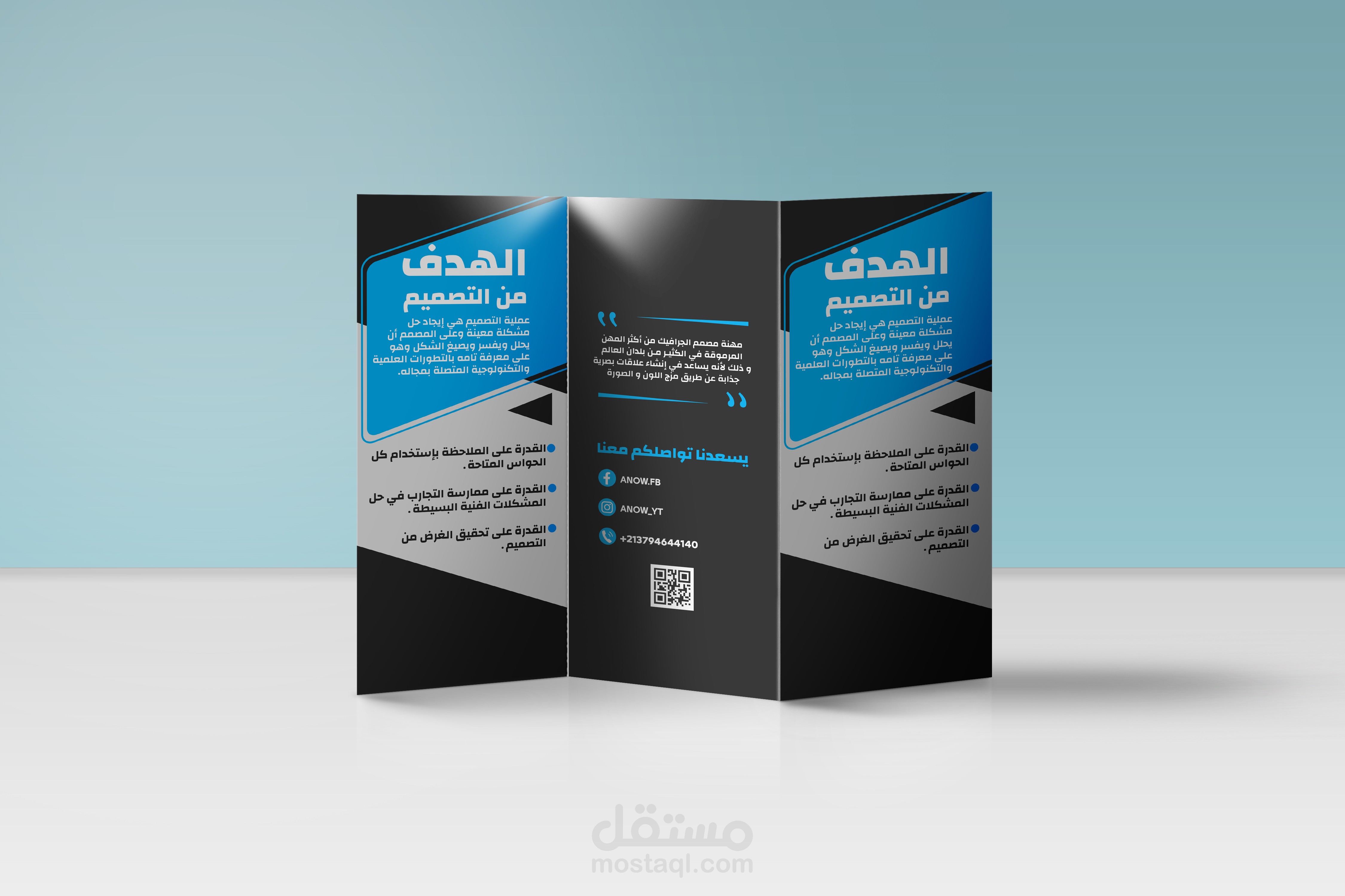 اطلب الان بروشور احترافي يعرض طبيعة عملك او خدمتك بشكل جذاب مع شعار علامتك التجارية والالوان المناسبة لها.