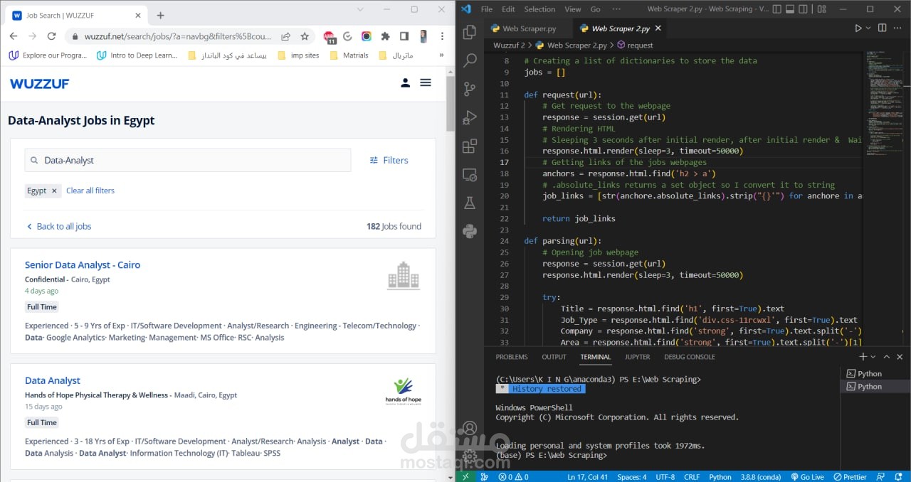 This project about scraping Wuzzuf website by applying two different web scraper versions